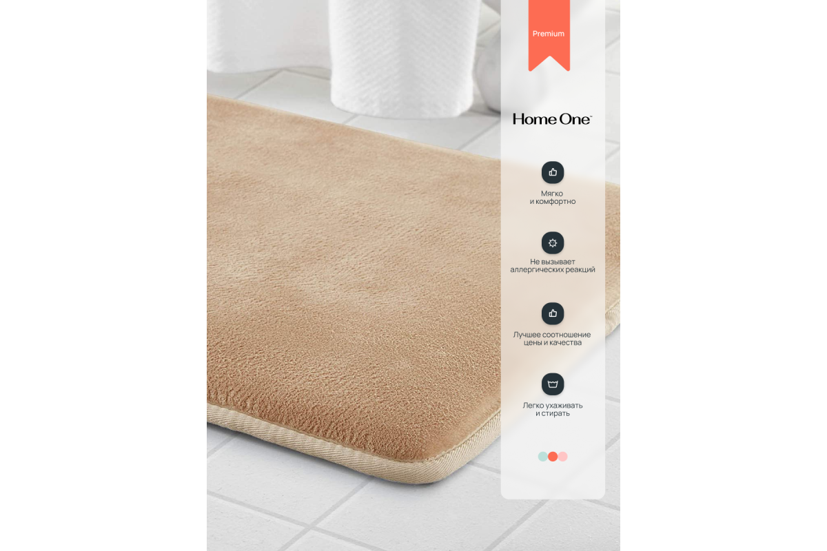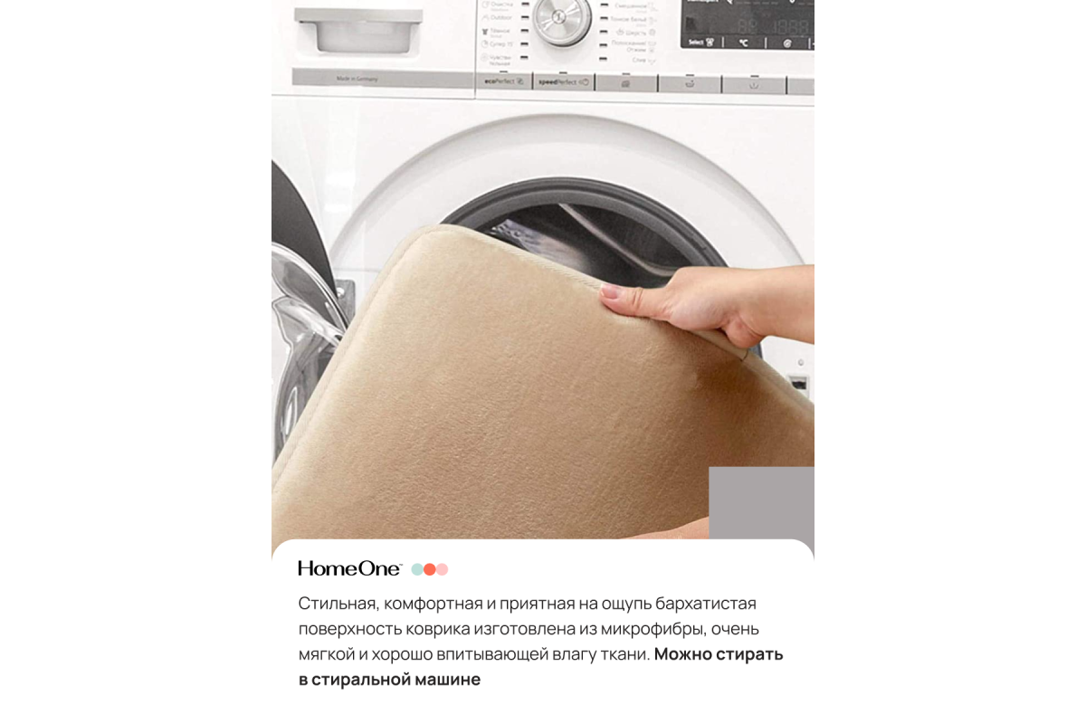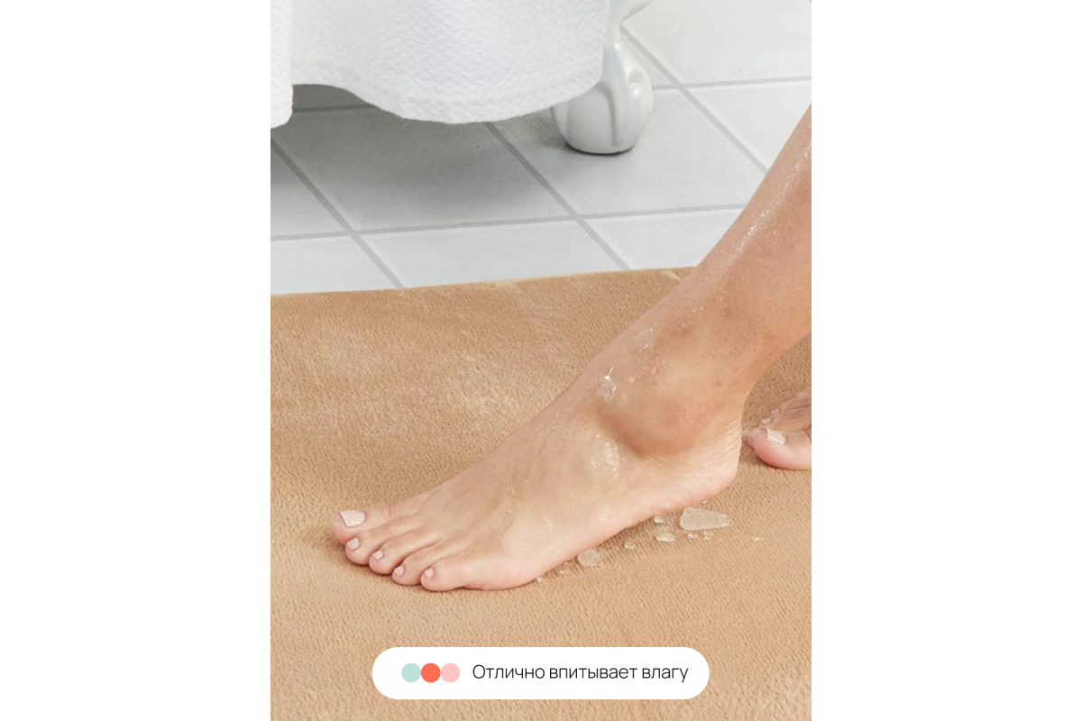 В состав ковриков входит слой пены Memory Foam - мягкий, обволакивающий материал доставит приятные ощущения при касании ваших ног, быстро принимает форму анатомических контуров тела и обеспечивает правильное распределение веса тела человека по своей поверхности. Дно коврика покрыто противоскользящим материалом, что предупредит от падения при выходе из ванны.