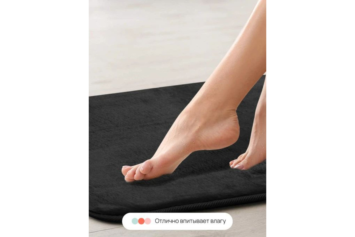 В состав ковриков входит слой пены Memory Foam - мягкий, обволакивающий материал доставит приятные ощущения при касании ваших ног, быстро принимает форму анатомических контуров тела и обеспечивает правильное распределение веса тела человека по своей поверхности. Дно коврика покрыто противоскользящим материалом, что предупредит от падения при выходе из ванны.