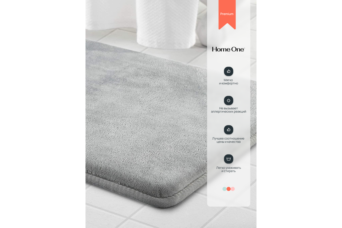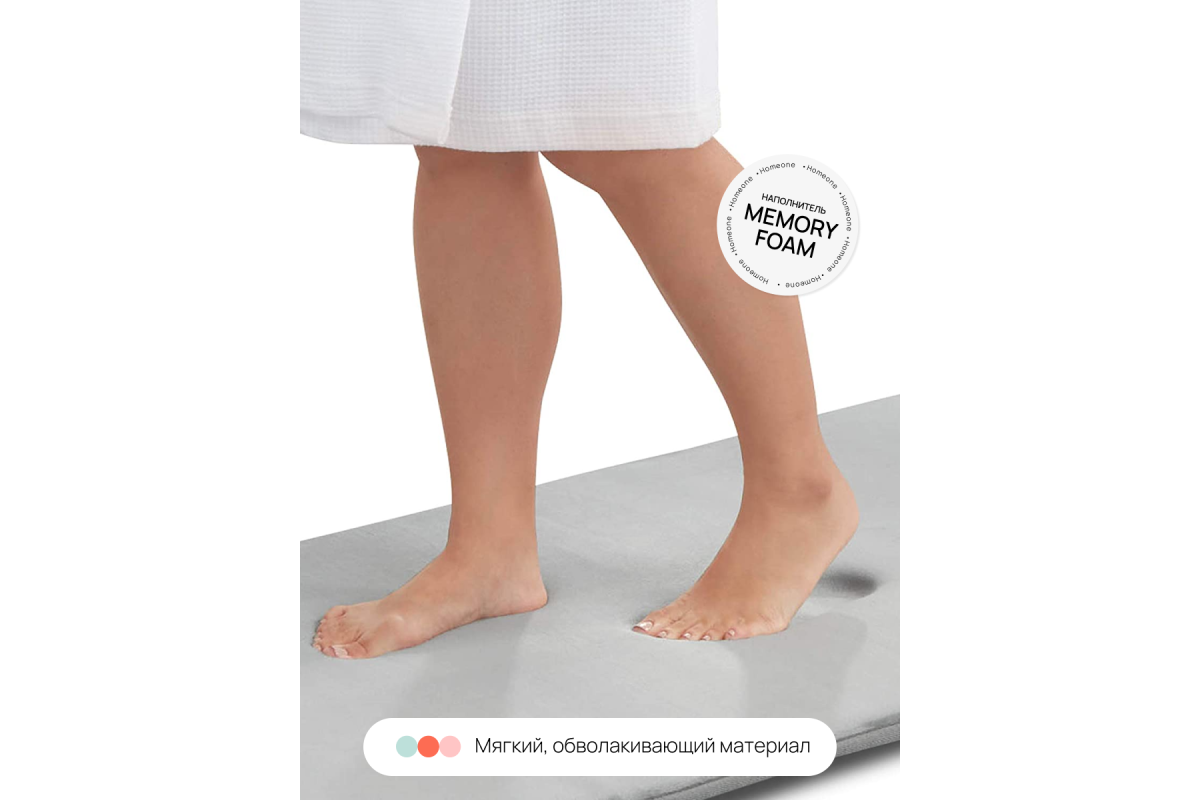 В состав ковриков входит слой пены Memory Foam - мягкий, обволакивающий материал доставит приятные ощущения при касании ваших ног, быстро принимает форму анатомических контуров тела и обеспечивает правильное распределение веса тела человека по своей поверхности. Дно коврика покрыто противоскользящим материалом, что предупредит от падения при выходе из ванны.