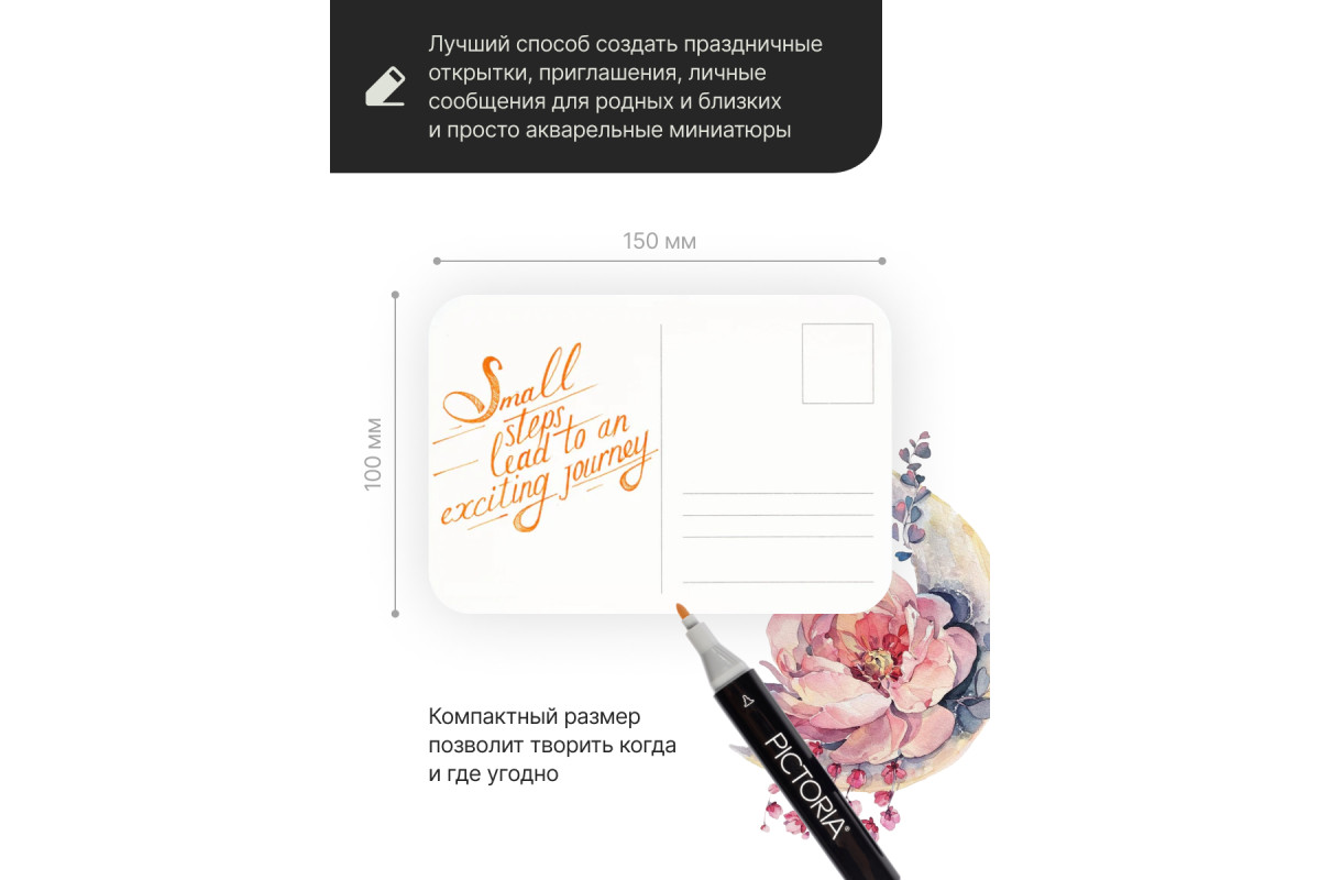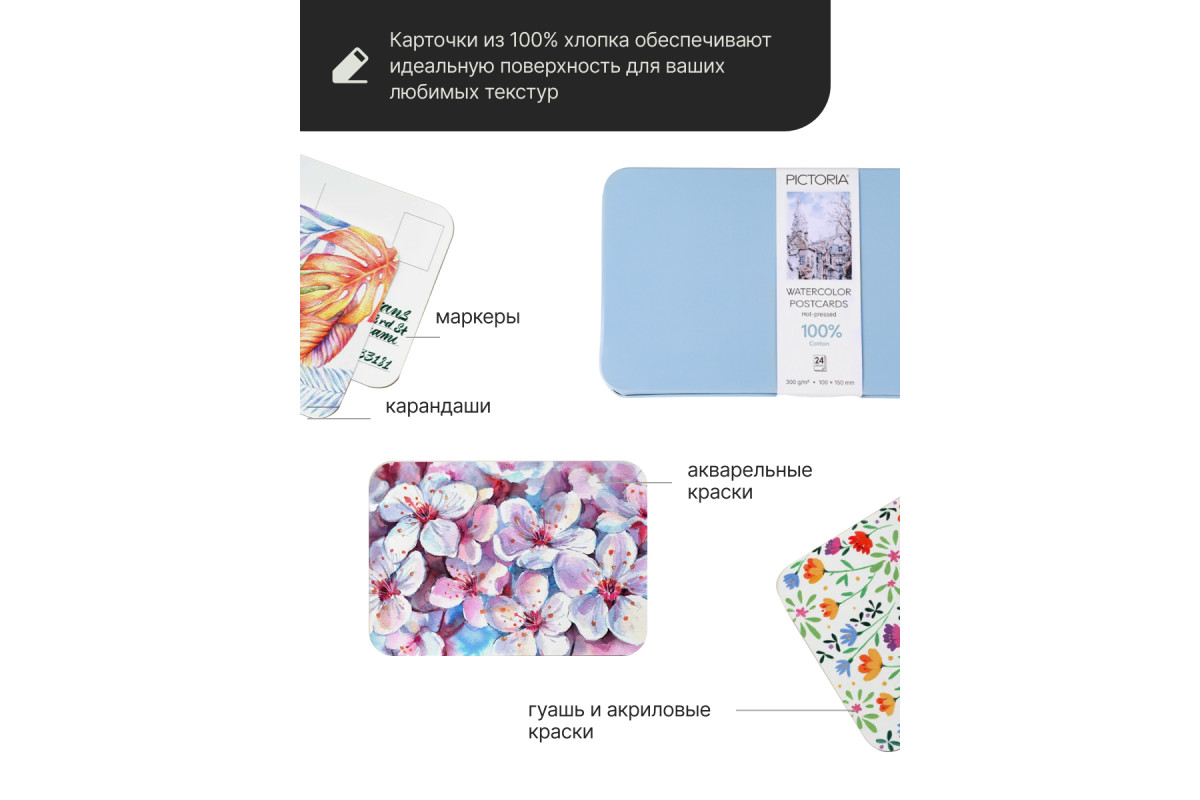 Набор открыток акварельной бумаги Pictoria, 100% хлопок, 300 гр/м.кв, 24шт., мелкозернистая, 100x150мм