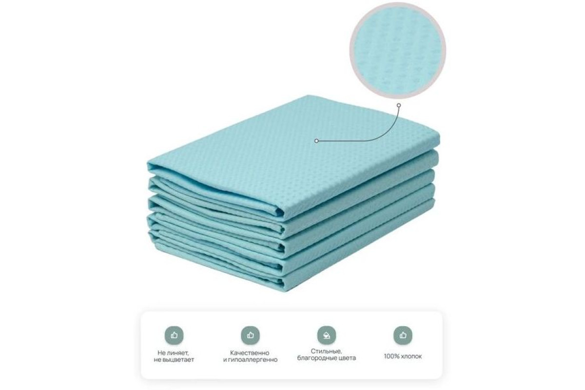 Вафельные полотенца изготовлены из натурального, экологически чистого хлопка. Особое плетение нитей ткани создает объемную клетку и позволяет хорошо впитывать влагу. Вафельное полотно плотностью 250 г/кв.м. Для удобства, каждое полотенце отшито с петелькой!