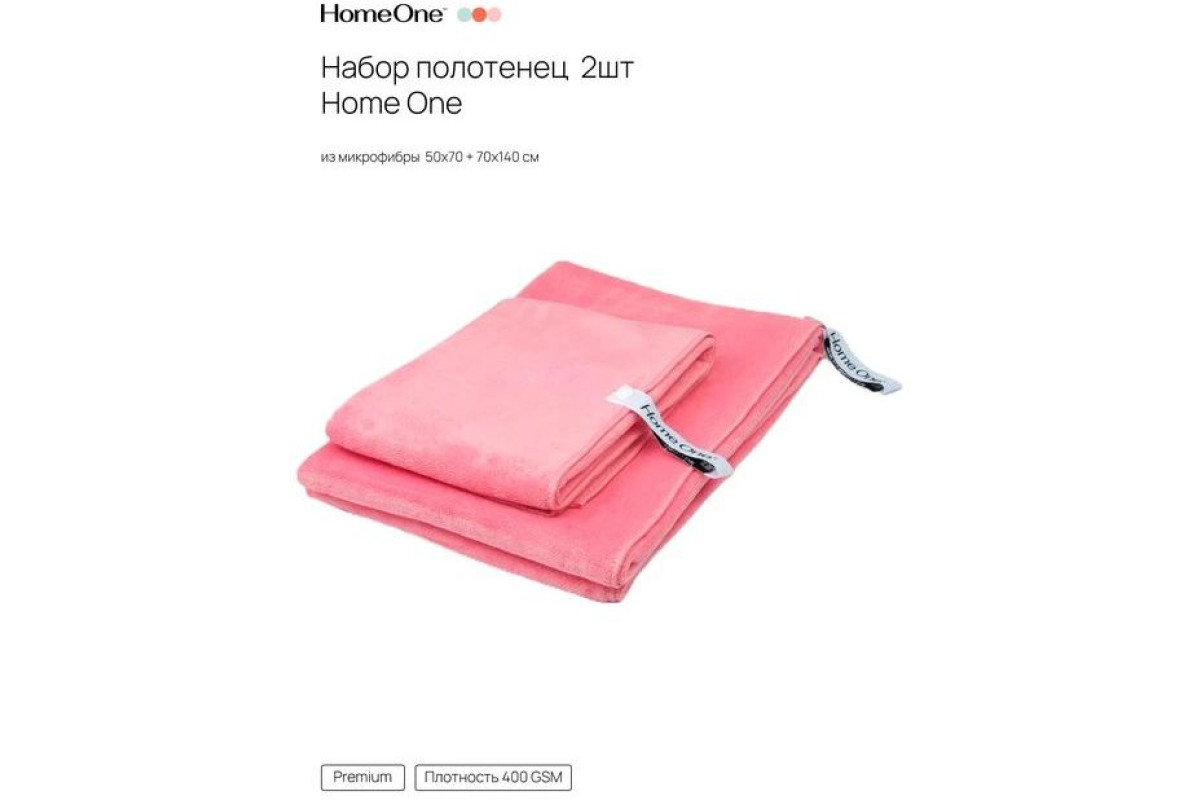 Набор полотенец Home One 50х70, 70х140, микрофибра, розовый
