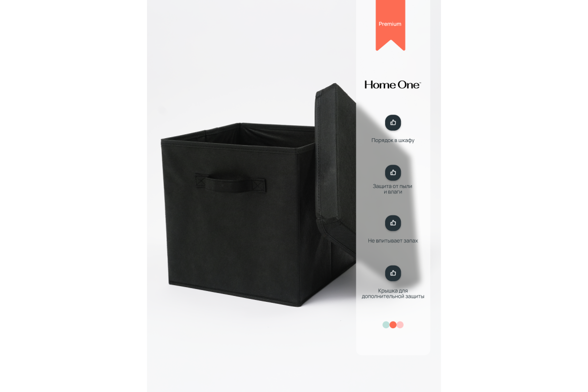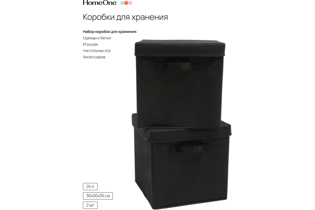 Набор складных коробок для хранения Home One, 30х30х30см, 2шт, крышка в комплекте, черный