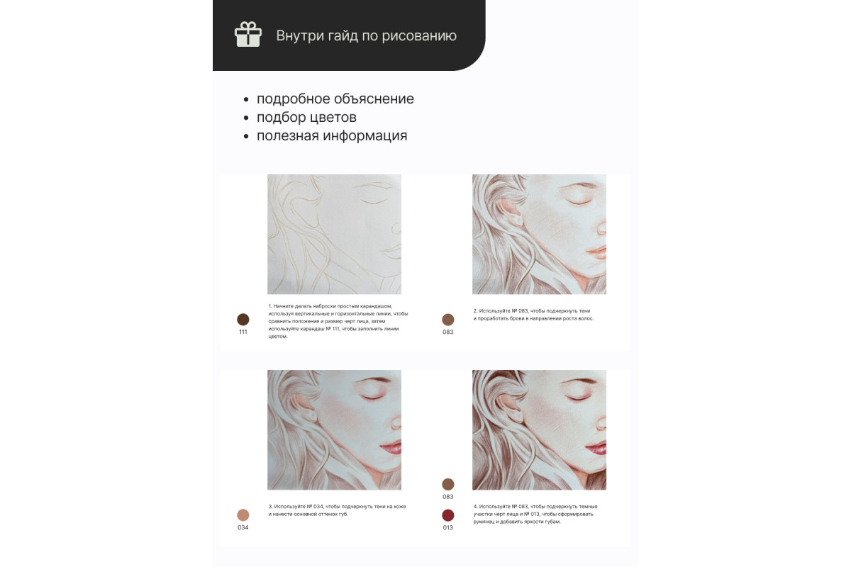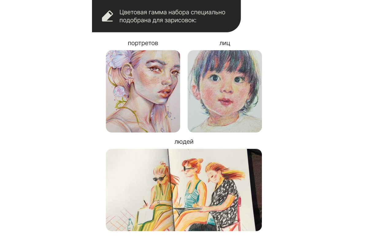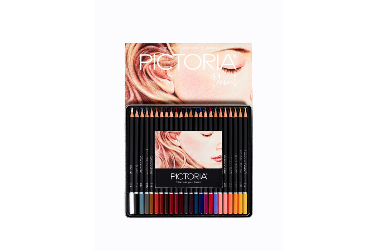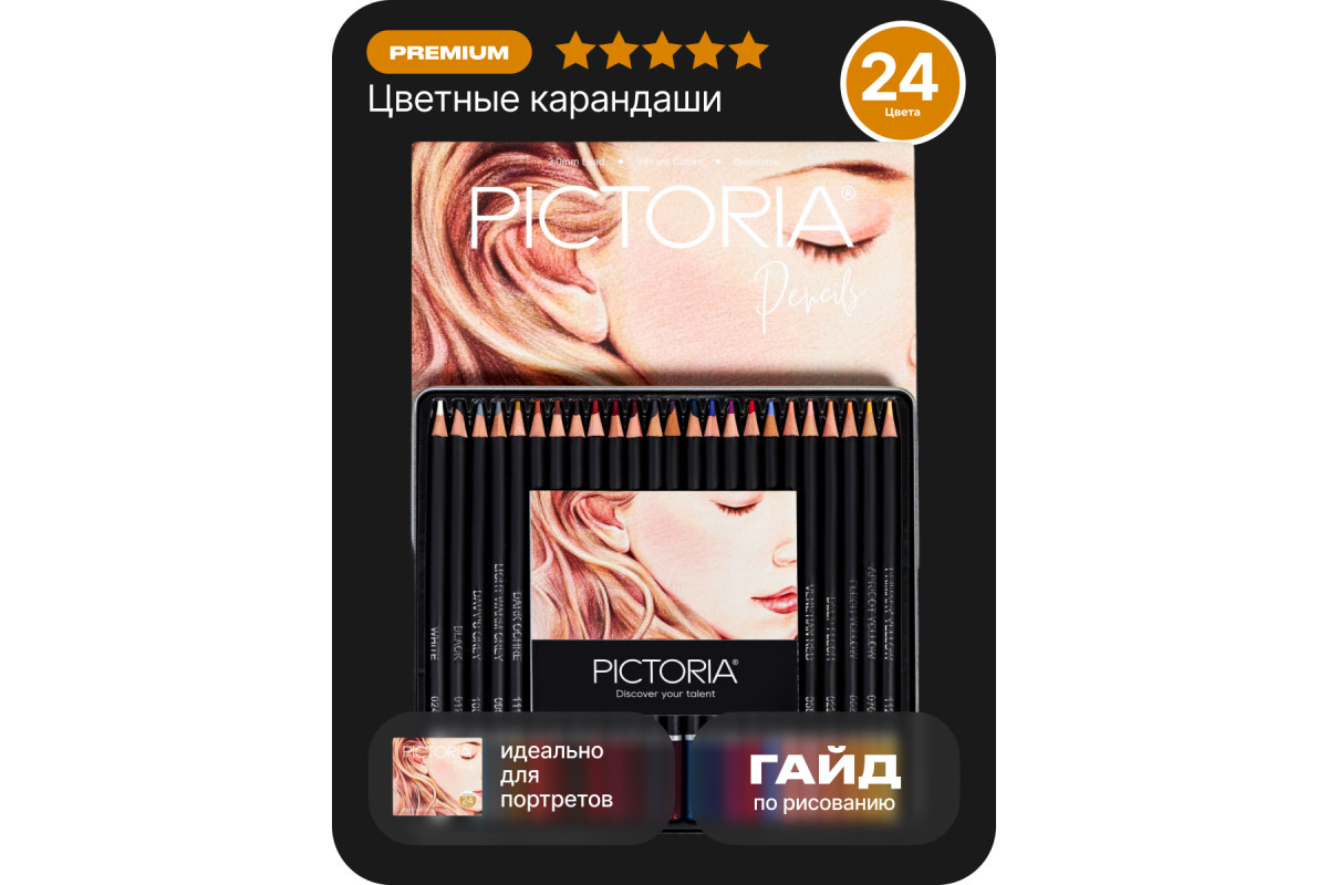 Данный набор цветных карандашей Pictoria Portrait поможет художникам в создании портретов. Набор включает 24 идеально подобранных цветных карандаша премиум-класса и пошаговое руководство по рисованию для тех, кто впервые решил попробовать этот вид рисования. Богатые, бархатистые грифели дают стабильный ровный, стойкий к свету насыщенный след, прекрасно ложатся и идеально подходят для достижения реалистичных оттенков кожи и прорисовки мельчайших деталей. Вдохновленные палитрой известных художников, мы создали ряд цветных карандашей, которые придают глубину и характер любому портретному рисунку.