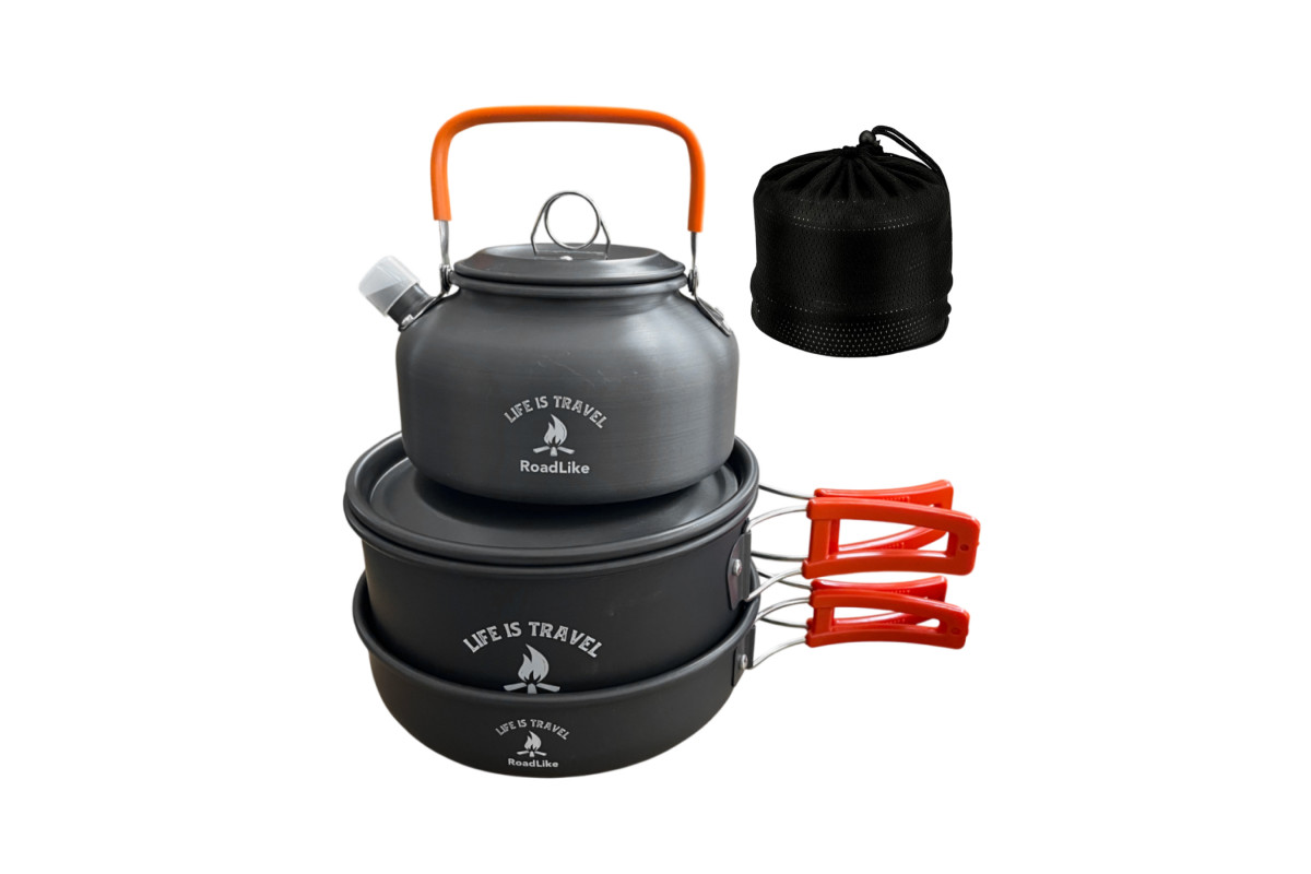 Набор походной посуды RoadLike Must Have 3 в 1 состоит из ковша с крышком, объемом 1,8 л, большой сковороды 18*4 см (1 литр) и чайника 0,8 литра. Все элементы набора изготовлены из высококачественного анодированного алюминия, что делает посуду легкой, прочной и безопасной для здоровья. Кроме того, такая посуда легко моется и не содержит вредных веществ.