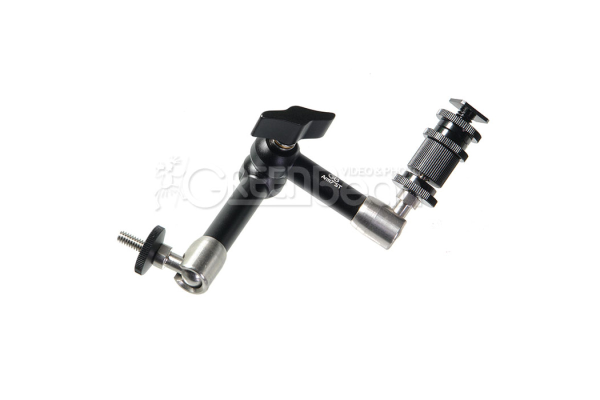 GreenBean Arm 7" ST - прочный и портативный шарнирный кронштейн, который предназначен для монтажа вспомогательного оборудования (осветителей, ЖК-мониторов, микрофонов и т.д.) на стойку, штатив, риг, кран и другие опоры, имеющие винт или резьбовое отверстие диаметром 1/4". Благодаря универсальной конструкции и широкому диапазону движений держатель обеспечивает широкие возможности применения. Общая длина 220 мм, максимальная нагрузка 3 кг.