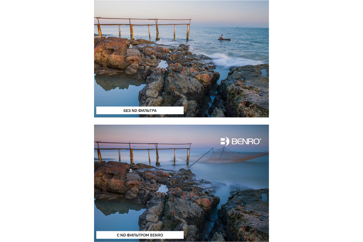 Фильтр нейтральной плотности, который обеспечивает уменьшение экспозиции на 10 ступеней. Его плотность 3,0 создает затемнение всего изображения, что позволяет фотографировать с более открытой диафрагмой или с более длинной выдержкой, чем обычно требуется.