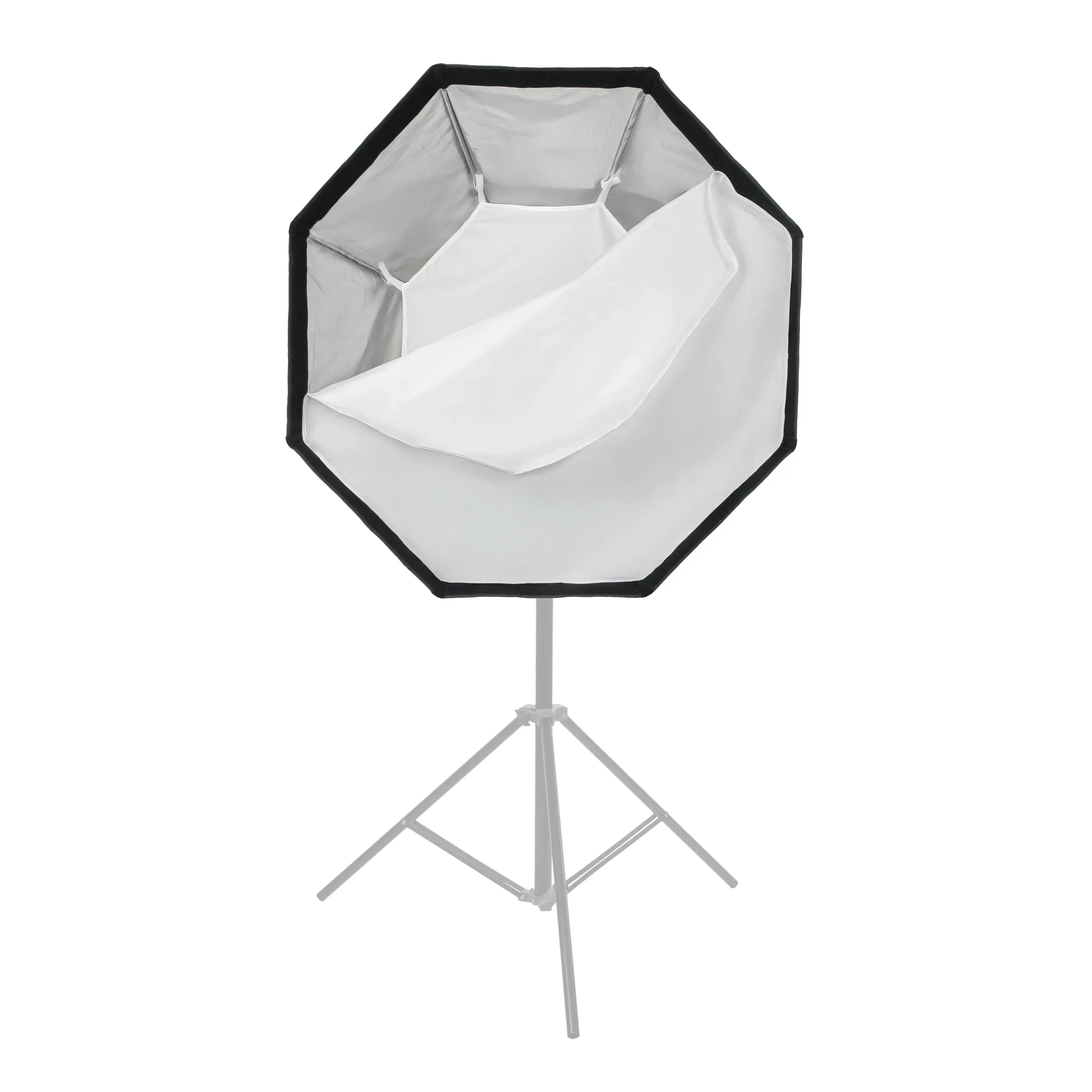 Софтбокс может вращаться на 360 градусов, что позволяет легко изменять направление света в зависимости от нужд съемки. Положение октобокса можно надежно зафиксировать с помощью специального винта, обеспечивая стабильность и точность освещения.