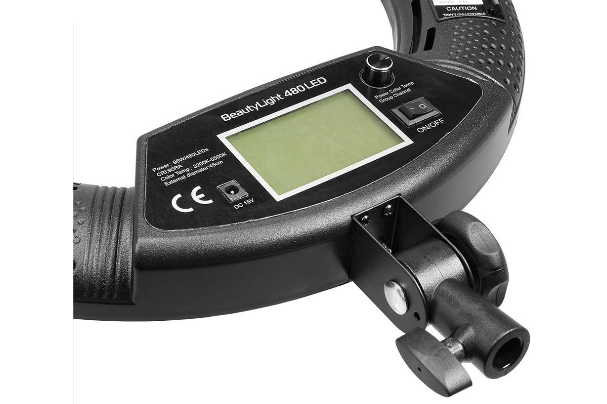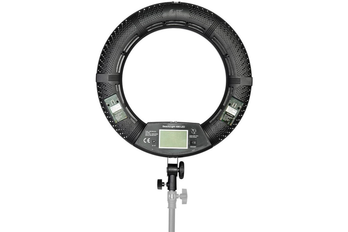 Светодиодный осветитель BeautyLight 480 LED представляет собой легкий и компактный осветитель с источником света в виде кольцевой панели со светодиодами, дистанционно регулируемой мощностью светового потока и цветовой температурой. Простая в использовании система дистанционного управления (ДУ) дает возможность одновременно управлять мощностью светового потока и цветовой температурой нескольких таких устройств, включенных в одну из шести групп. Небольшие размеры осветителя и низкий уровень потребляемой светодиодами мощности делают этот осветитель, создающий тем не менее достаточно мощный световой поток, привлекательным для использования в студии для портретной, предметной, рекламной и других видов фотосъемки, а также на выезде с использованием в качестве источника питания двух аккумуляторов Sony F750 / 970. Бестеневой характер освещения и возможность точной настройки цветовой температуры делает BeautyLight удобным инструментом для использования визажистами, гримерами и стилистами.