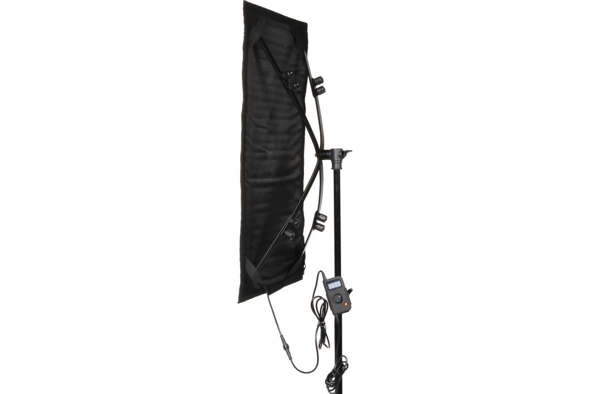 По углам панели расположены карманы для крепления на держателе для установки на стойку. Держатель представляет собой четыре складные стальных лапки с винтовой фиксацией. Держатель панели предусматривает установку на кронштейн с резьбой 1/4'', на стойку с возможностью горизонтальной установкой шпигота 5/8'' или, или к примеру, через зажим CLD-20. Кроме того, благодаря малому весу 1.7 кг, панель можно закрепить прямо на стене при помощи двухстороннего скотча или кинотейпа.