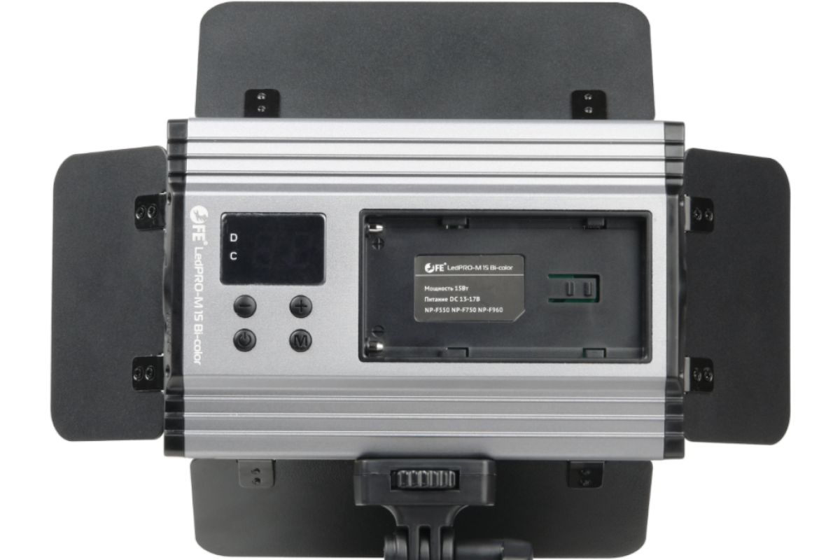 LedPRO-M 15 Bi-color предусматривает два типа питания – от съемной аккумуляторной батареи NP-F или от внешнего сетевого адаптера (аккумуляторы и сетевой адаптер приобретаются отдельно).