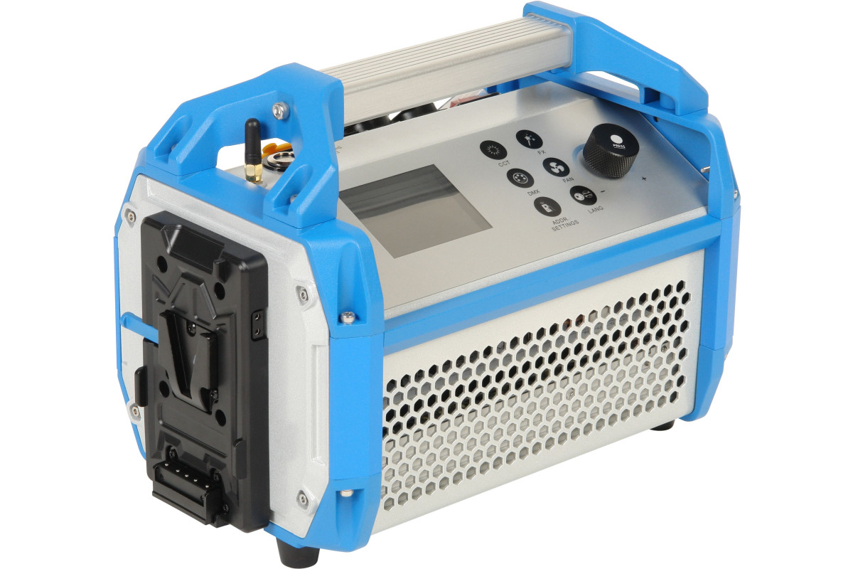 В зависимости от задач и места съёмки осветитель может питаться от сети переменного тока, от аккумулятора типа V-mount или от внешнего источника постоянного тока напряжением =24…36В.