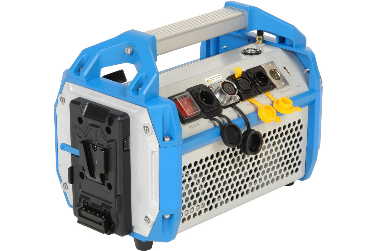 В зависимости от задач и места съёмки осветитель может питаться от сети переменного тока, от аккумулятора типа V-mount или от внешнего источника постоянного тока напряжением =24…36В.