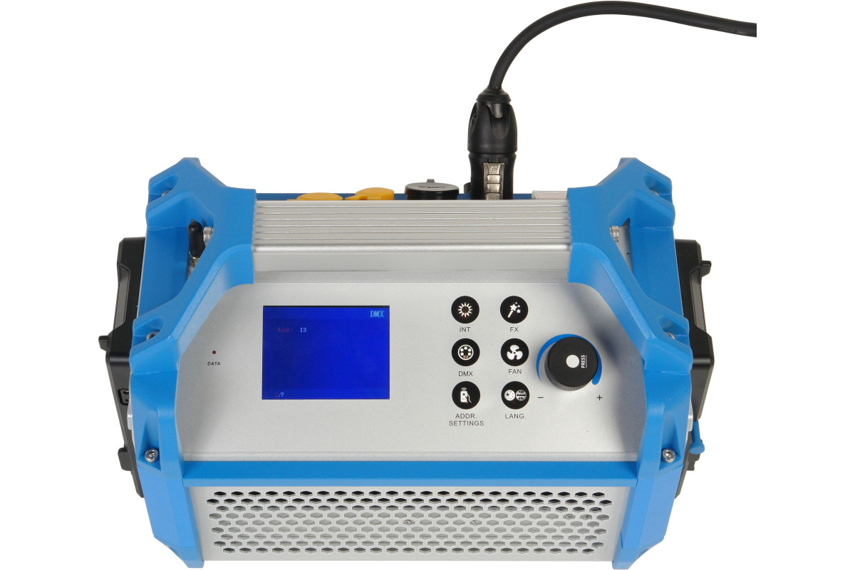 Осветитель оборудован DMX декодером, адрес канала устанавливается кнопками на панели управления и отображается на ЖК дисплее.