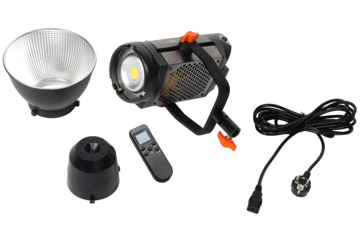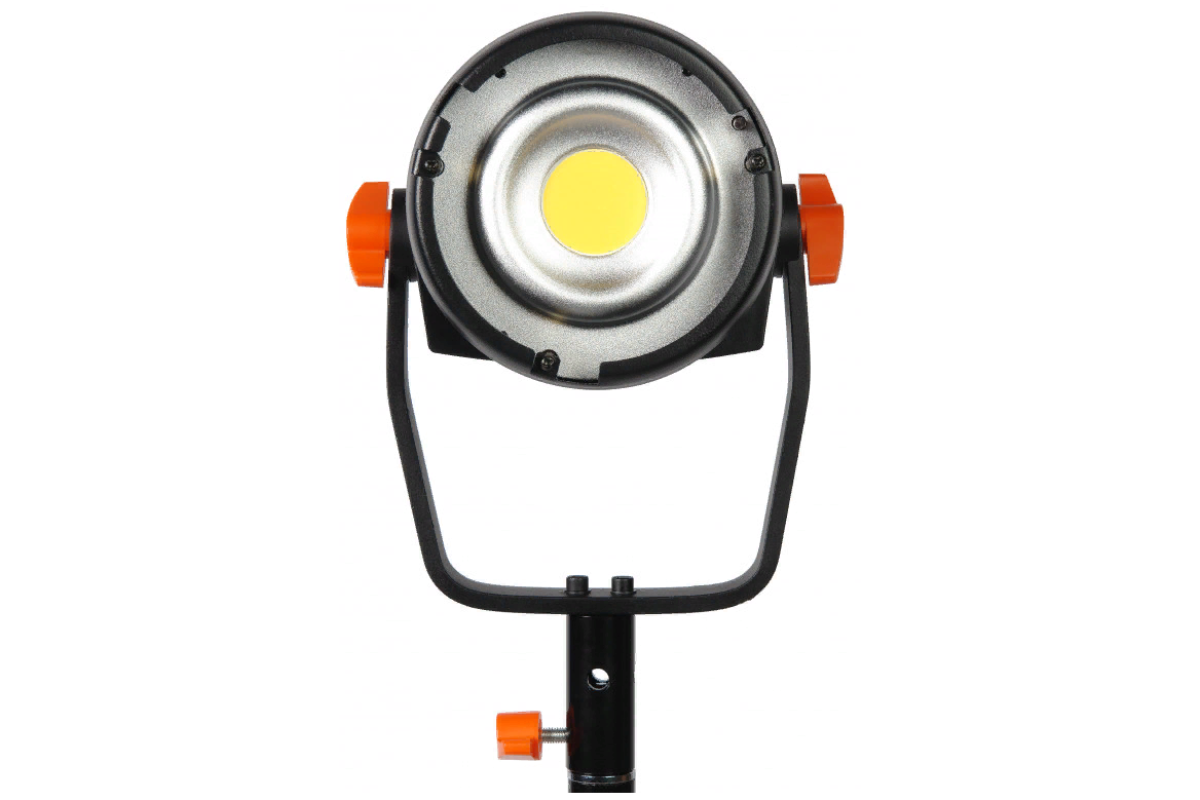 Осветитель оснащен металлическим байонетом Bowens, который подходит для большого количества различных светомодифицирующих насадок: софтбоксов, рефлекторов, портретных тарелок и т.д. В комплект входит стандартный рефлектор Ø185 мм параболической формы с фактурной серебристой внутренней поверхностью. Совместное использование осветителя и параболического рефлектора создает яркий направленный пучок света с очерченными краями.