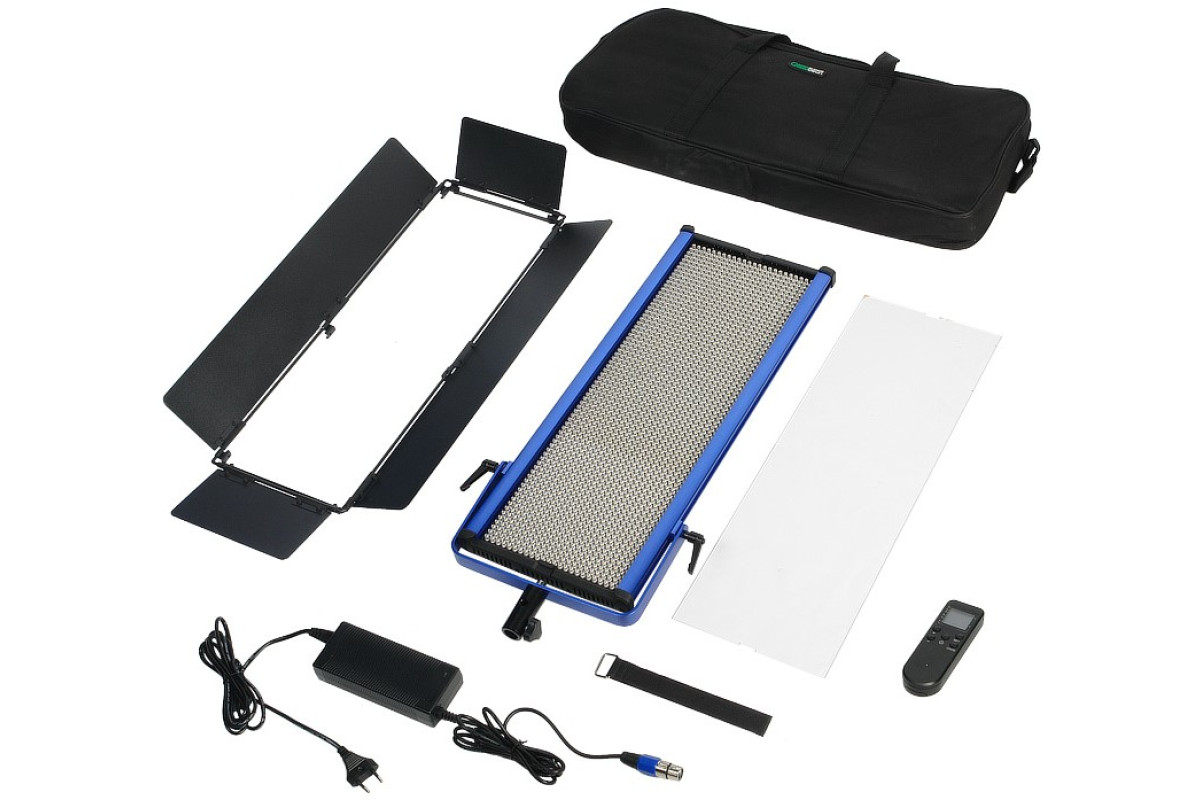 Отличные технические характеристики – световой поток 5600 лм, плавное регулирование цветовой температуры в расширенном диапазоне 3050–5950 К и яркости от 10 до 100%, точную цветопередачу (CRI > 97) – обеспечивают 1728 сверхъярких светодиодов. Каждый светодиод закрыт рассеивающей линзой, что обеспечивает однородность светового потока. В комплект входит рассеивающий полупрозрачный фильтр. На панели фильтр удерживают два упора, утапливающиеся в корпус.