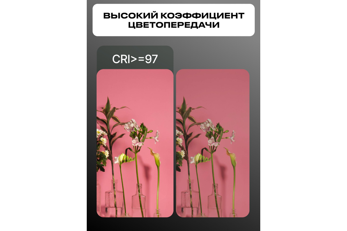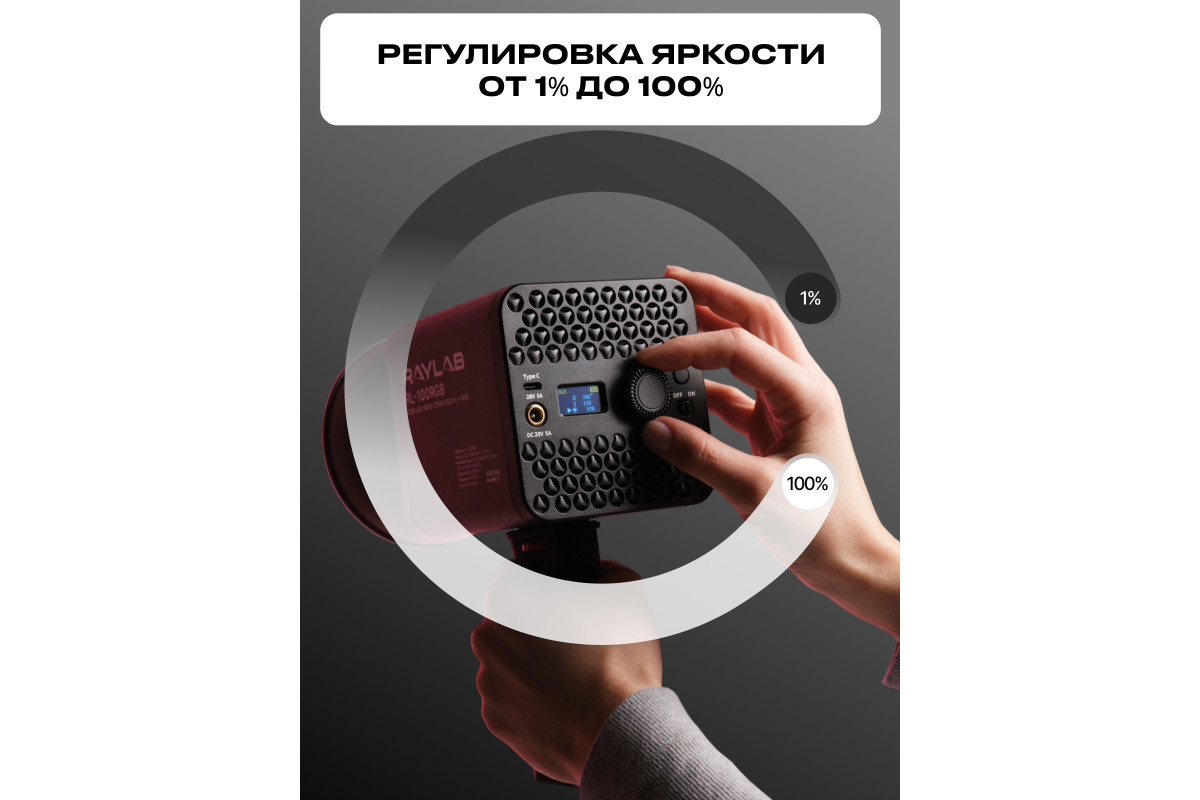 Коэффициент цветопередачи профессионального уровня 96+ позволяет сохранить естественные цвета на ваших кадрах. Срок службы светодиодного COB элемента до 50тыс часов.