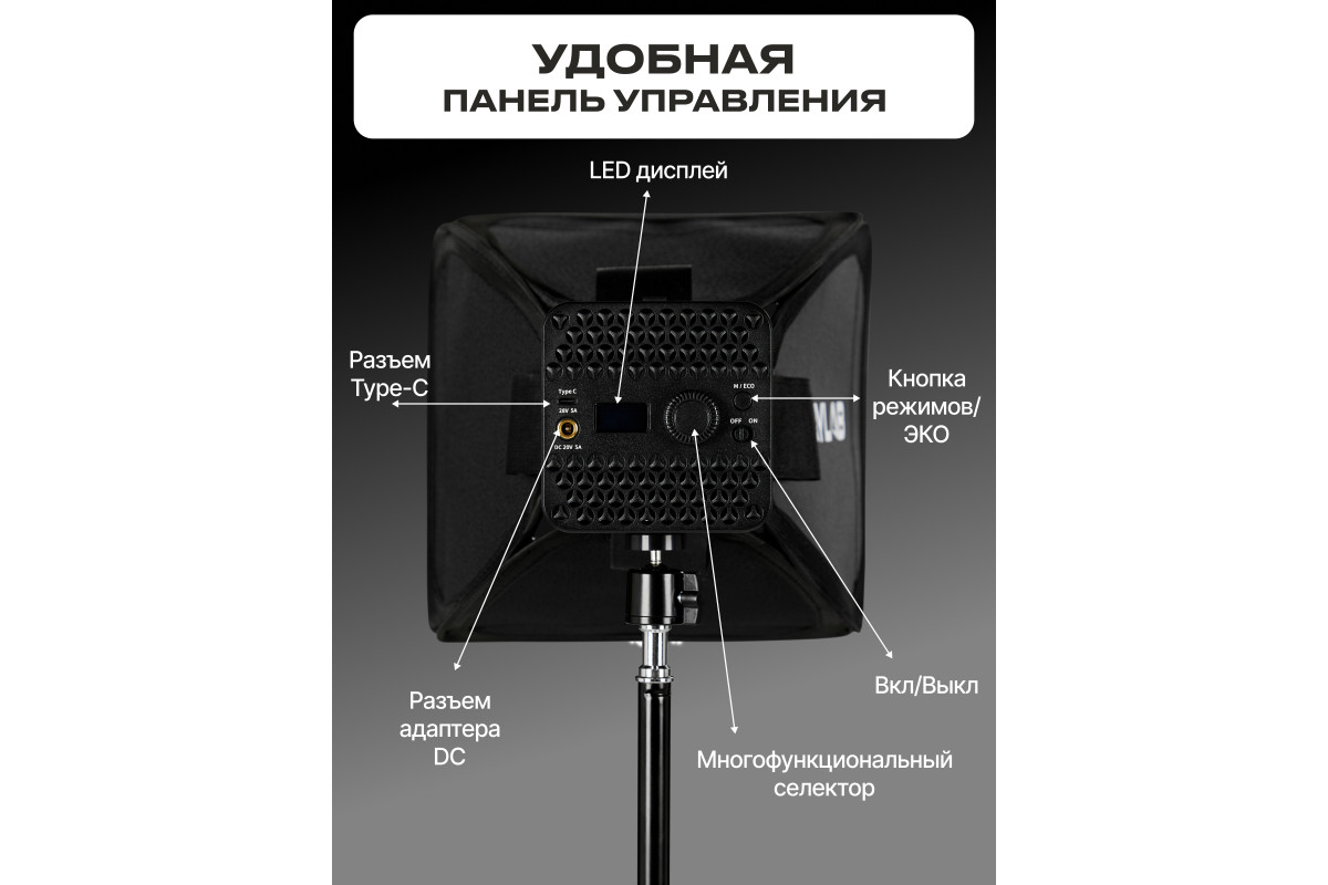 Этот компактный светодиодный моноблок станет отличным выбором для создания качественного видео-контента в домашних условиях, на выездной съемке или в студии.
