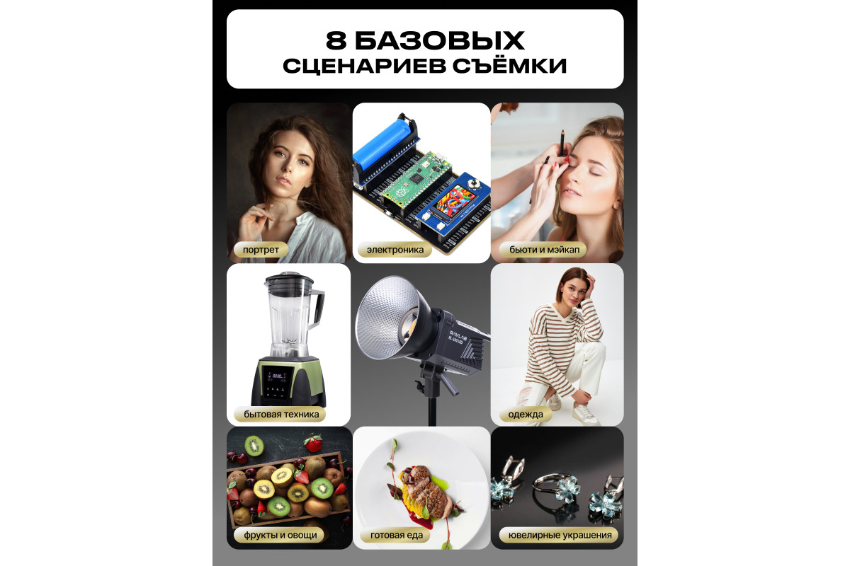 Raylab RL-300PRO это современный мощный светодиодный моноблок, который станет отличным выбором для создания качественного видео-контента в домашних условиях, на выездной съемке или в студии.