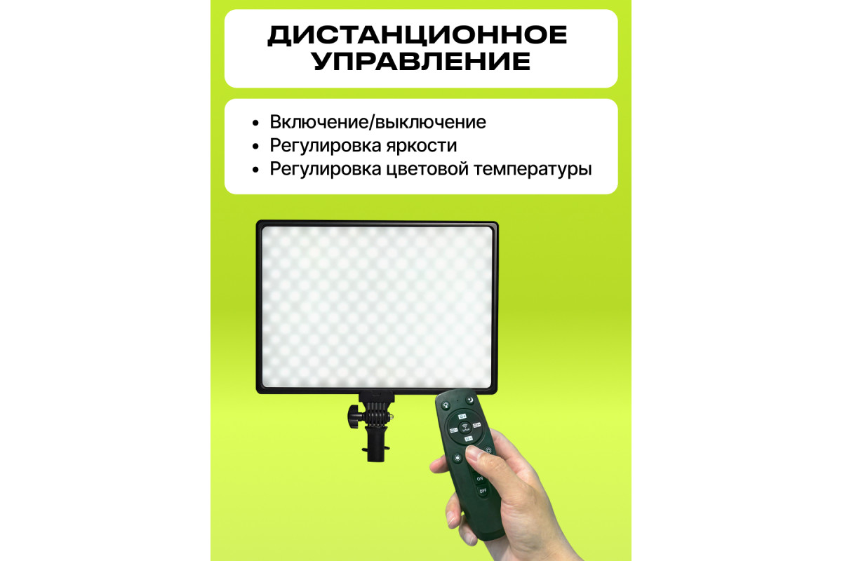Регулировка цветовой температуры в пределах 3000-6000К, плавная регулировка мощности и простота управления делают его отличным инструментов как для начинающих, так и для продвинутых операторов. Удобный пульт управления поможет с лёгкостью изменять параметры дистанционно. Благодаря высокому CRI (>90) прибор сохраняет цвета объектов близкими к реальным. Регулируемое основание позволит выполнять поворотно-наклонные движения осветителя. Осветитель имеет 4 режима с предустановленными параметрами. Не нагревается сам и не нагревает объекты.
