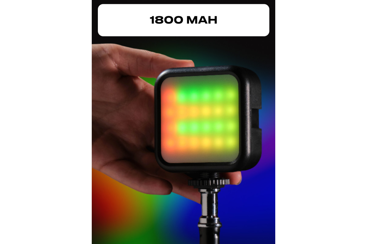 Raylab LED06-1 RGB – мобильный светодиодный осветитель, позволяющий создавать световые эффекты. Широкий диапазон цветовой температуры (3000-7000K) и 7 цветов формата RGB позволяют создавать различные световые эффекты с ровным и мягким светом. 3 крепления "холодный башмак" позволяют закрепить на осветителе микрофон или собрать комплект из нескольких моделей для более интенсивного освещения. Встроенный Li-Ion аккумулятор 1800mAh обеспечивает непрерывную работу до 1,5 часов. Этот свет подойдет для блогеров и фотографов, помогая создавать креативные и яркие кадры.