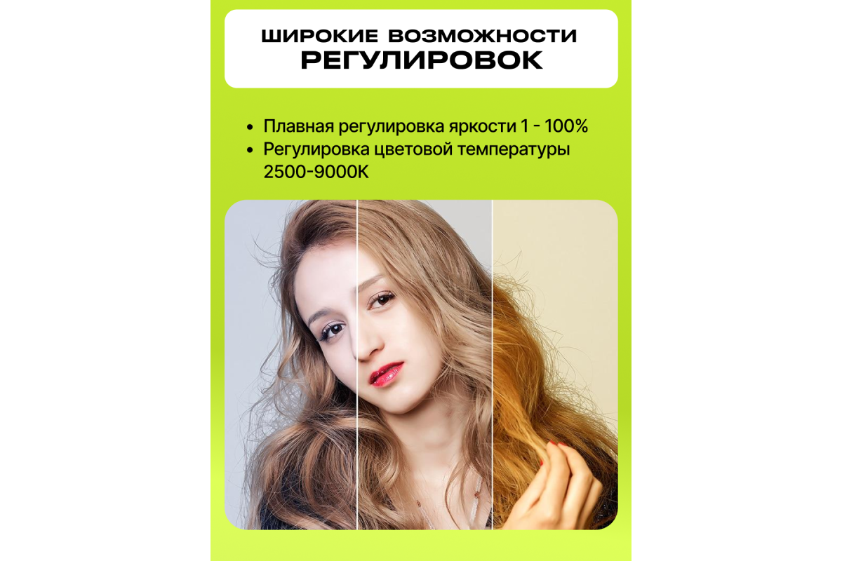 Цветовая температура: 2500-9000К ± 200, RGB 0-360°