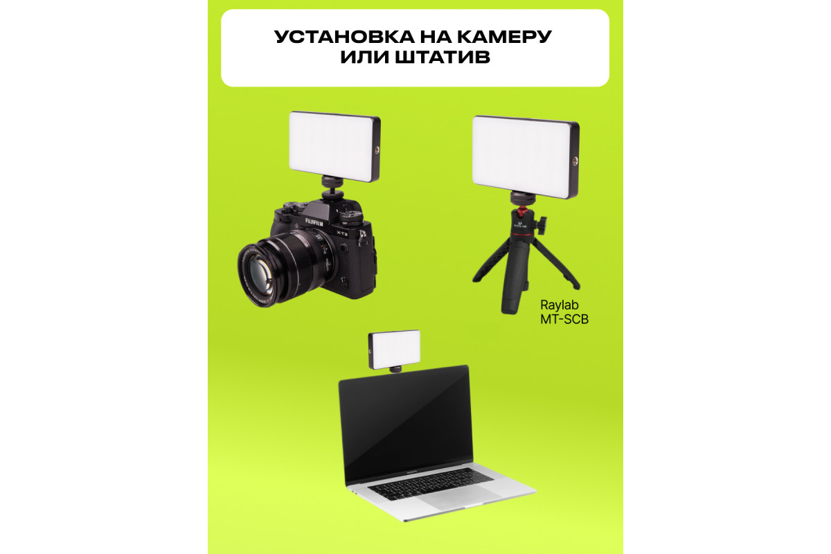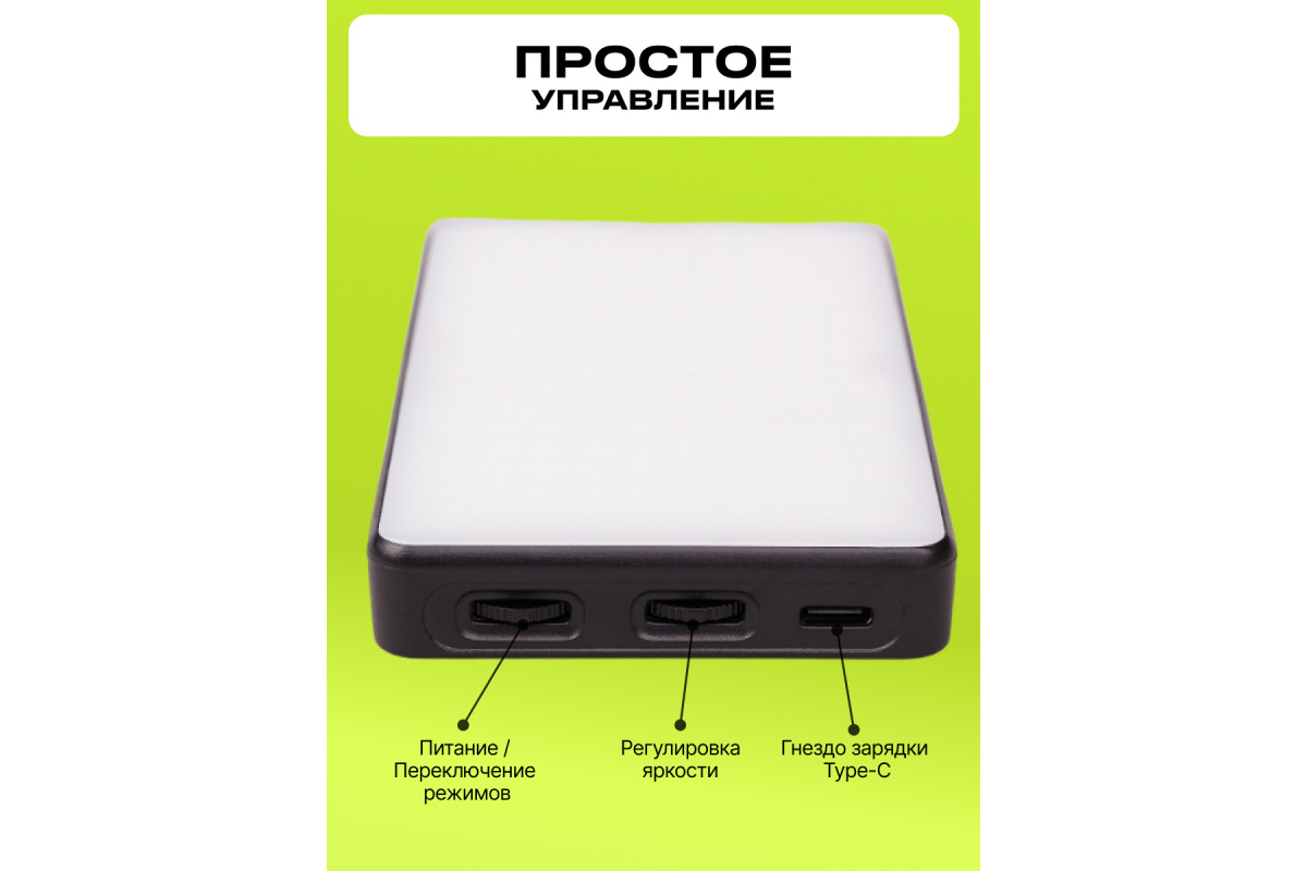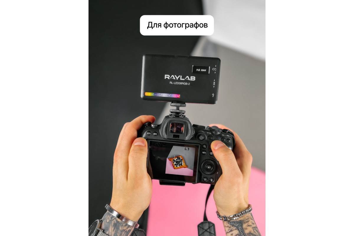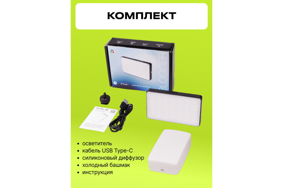 Raylab LED08R-2 - мобильный свет, который станет вашим верным спутником в любых съемочных условиях и позволит вам создавать потрясающие фотографии и видео. С его помощью вы сможете добавить волшебства в вашу домашнюю студию, снять качественные видео на выездных съемках, создать идеальное освещение для селфи-блогов на ходу и провести профессиональные онлайн-трансляции. Этот мобильный свет подойдет для предметной и мобильной фотографии, помогая вам запечатлеть каждую мгновение с великолепной яркостью. С Raylab LED08R-2 вы сможете создавать разнообразные световые эффекты благодаря широкому диапазону цветовой температуры HSI 0-360° и CCT 2500K до 9000K. Будь то теплый золотистый свет для уютной атмосферы или яркий цветной свет для игры и экспериментов, этот RGB осветитель позволит воплотить ваши творческие идеи с ровным и мягким освещением. Селфи лампа Raylab LED08R-2 легко устанавливается на ваше оборудование благодаря двум вариантам крепления: 1/4"" и холодному башмаку. Вы сможете легко интегрировать его в вашу съемочную систему и настроить в нужное положение, чтобы добиться идеального освещения - на камере, стойке или штативе. Встроенный Li-Ion аккумулятор емкостью 3100mAh обеспечивает непрерывную работу видеосвета от 2 до 15 часов, что позволит вам сосредоточиться на творчестве без лишних прерываний. Осветитель имеет удобную систему зарядки- через кабель USB Type-C, поэтому легко подключить к сети, паурбанку или ноутбуку. Вы сможете плавно регулировать мощность светодиодной панели от 1% до 100%, настроив его идеально под вашу съемку. Управление осуществляется легко и удобно. Стильная компактная и легкая rgb лампа Raylab LED08R-2 легко помещается в вашу сумку и готова к действию. С его помощью вы сможете создавать профессиональное освещение в любом месте и в любое время.