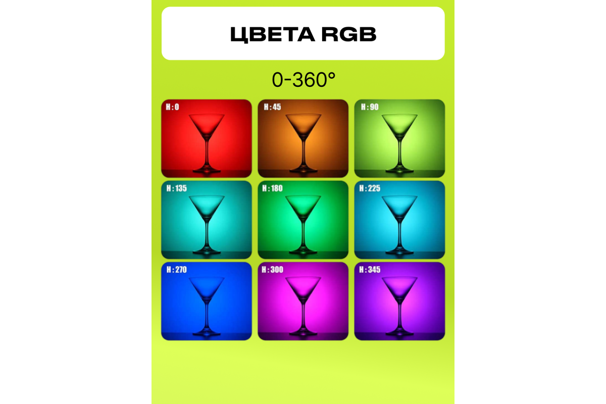 Цветовая температура: 2500-9000К ± 200, RGB 0-360°