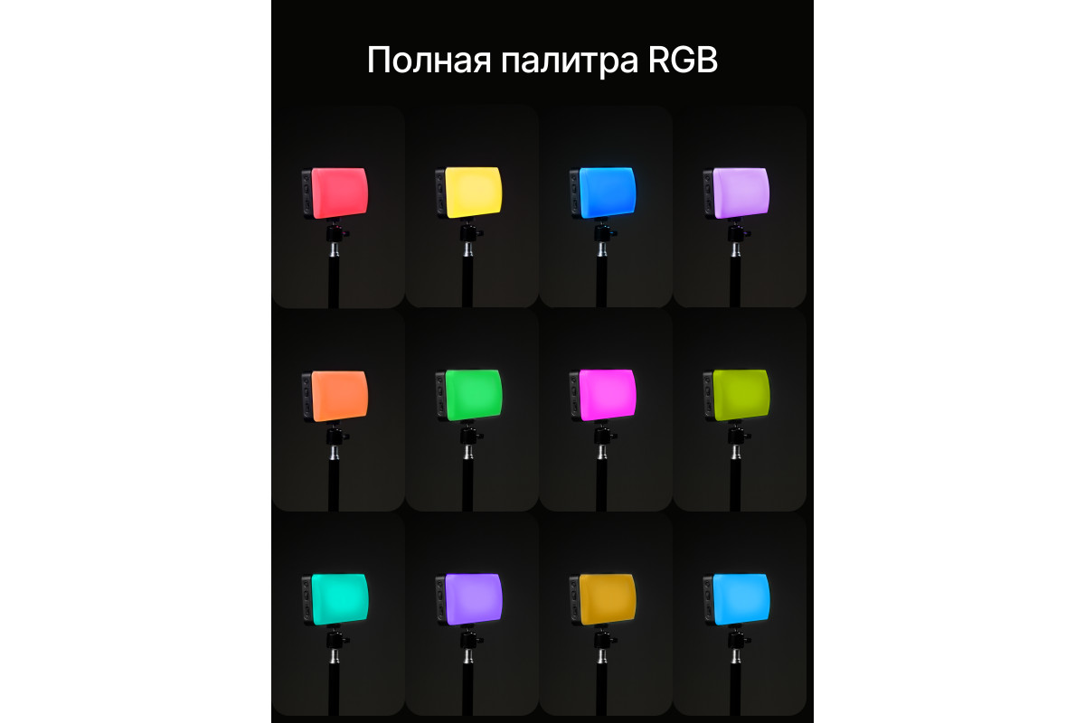 Комплектация: осветитель RL-LED20RGB - 1шт; рассеиватель пластиковый с магнитным креплением - 1шт; шаровая головка мини - 1шт; ""пистолетная"" рукоять - 1шт; жесткий кейс - 1шт; кабель USB-C - 1шт.