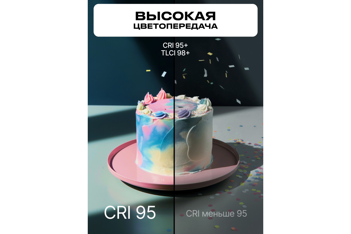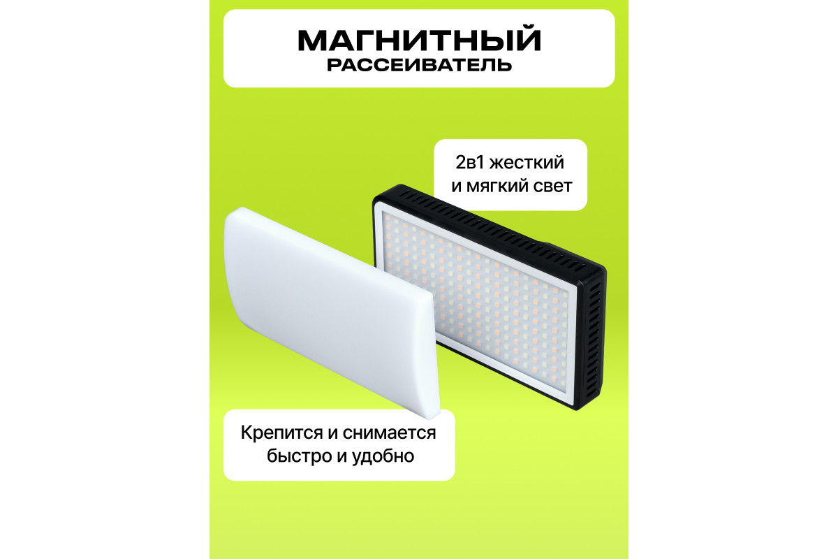 260 высококачественных светодиодов обеспечат безупречную цветопередачу с CRI 95+ и яркую подсветку до 3900люкс (на 0,5м). Широкий диапазон цветовой температуры и 360° палитры HSI обеспечат великолепные кадры в любых условиях.