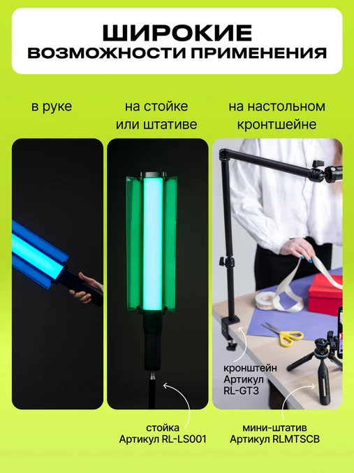 Осветитель светодиодный Raylab RL-LED40RGB это мощное и современное световое решение в стиле “светодиодного жезла” для креативной работы в студии и на выезде.