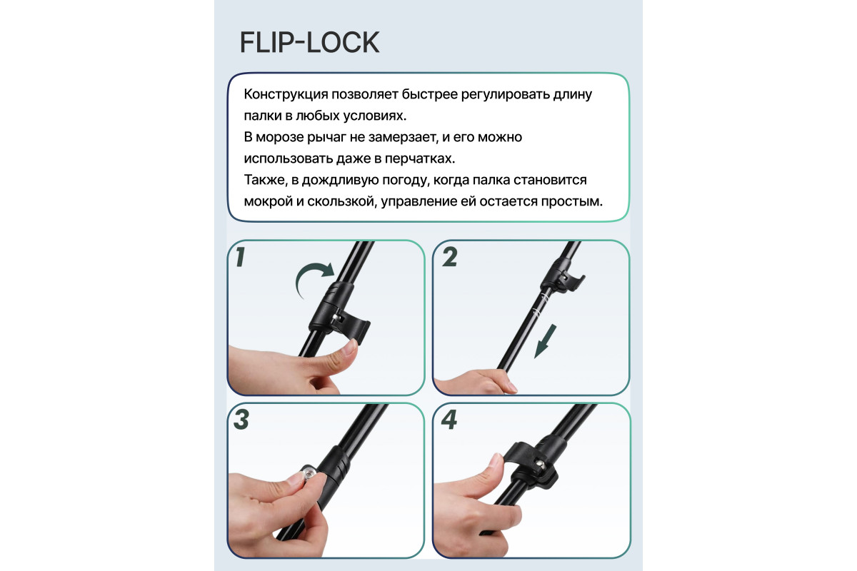 Комплектация: палки, 2 кольца для грунта, 2 резиновых наконечника, фирменный чехол, регулируемые темляки-перчатки, полная инструкция с рекомендациями. Самые компактные Треккинговые палки на рынке РФ!