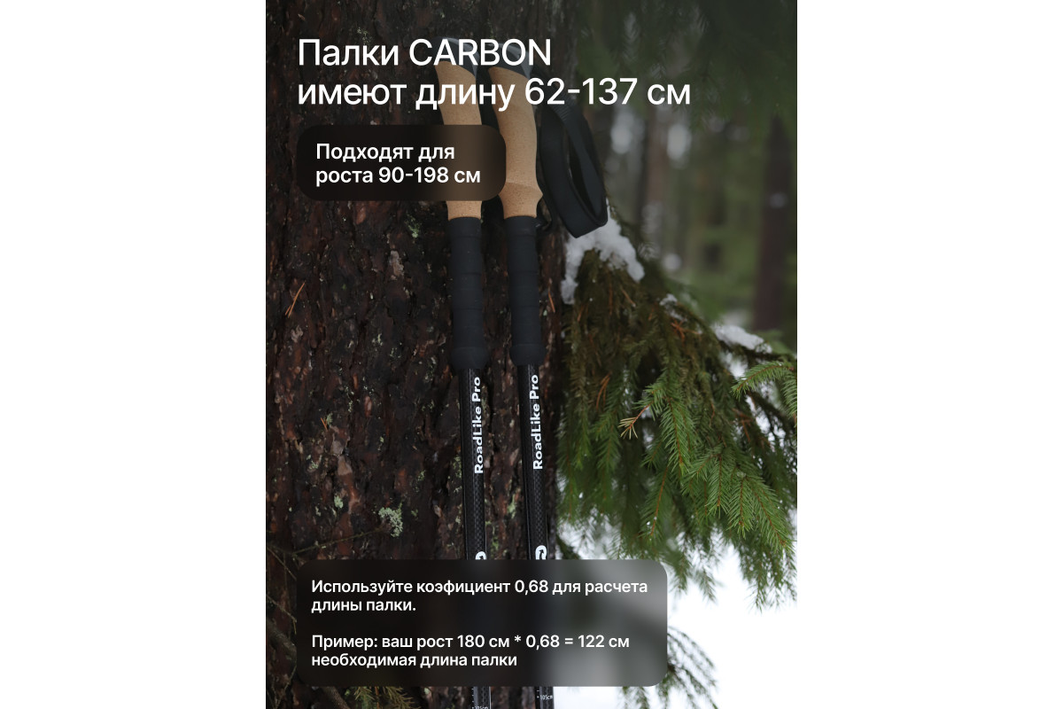 Палки для скандинавской ходьбы карбоновые RoadLike Pro 100% Карбон - легкие и сверхпрочные телескопические палки с полным комплектом необходимых аксессуаров и системой flip-lock для регулировки высоты палок от 110 до 137 см.