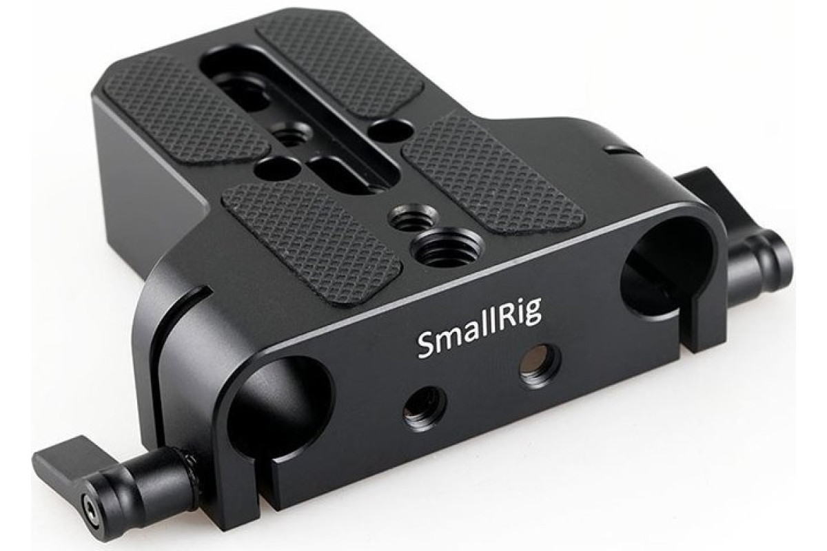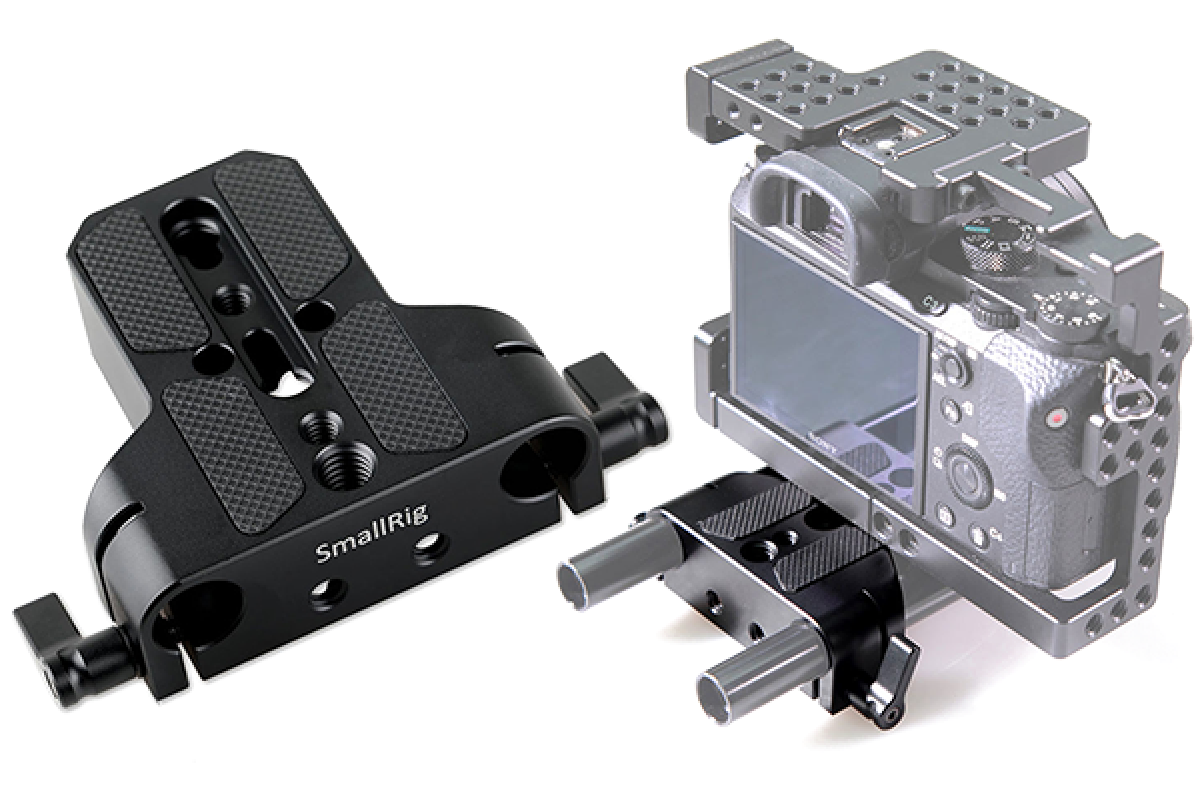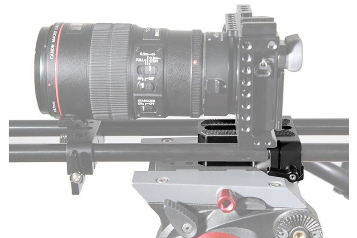 Базовая площадка разработана для работы с популярными камерами Sony A7, Sony F7S, Canon C100 и т.д. К камере крепится болтом 1/4 или 3/8 дюйма (в комплекте). Площадка имеет ходы для рельс 15мм диаметром с разносом 60мм, позволяющие закрепить фоллоу фокус, matte box и прочие аксессуары на камеру. Наличие резьбы 1/4 и 3/8 дюйма на нижней части позволяет закрепить базовую площадку на любой штатив.