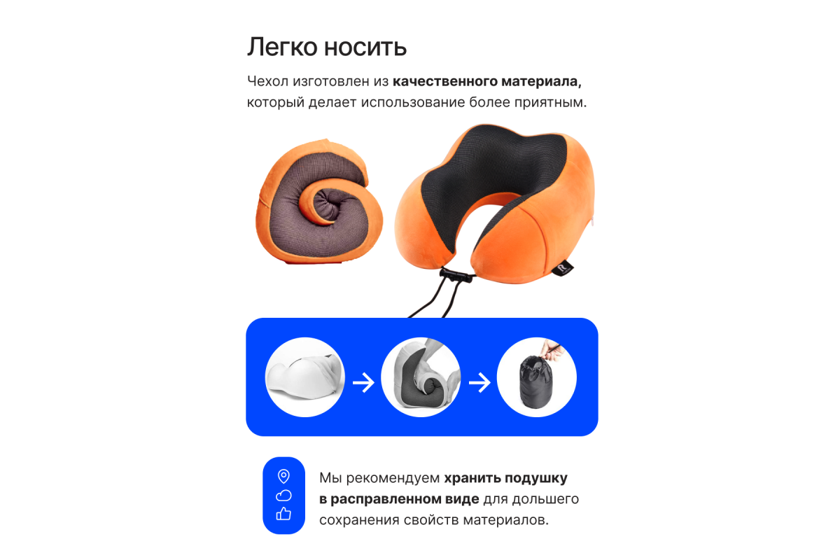 Подушка для путешествий/подушка для шеи Roadlike Travel Kit Velvet идеально подойдет для путешествия в автомобиле, самолете или поезде. Благодаря эргономичному дизайну, исполнению из специальной поддерживающей пены с эффектом памяти для поддержки головы и шеи, съёмному чехлу подушки, выполненному из микрофлиса обеспечивается максимальный комфорт во время использования. В набор 4в1 входят: подушка, беруши, маска для сна и чехол для хранения. Подушка легко сжимается и собирается в мешочек для хранения.