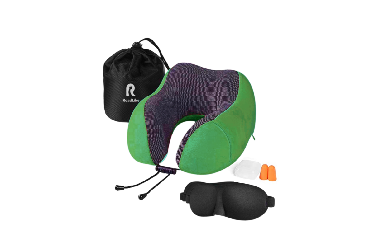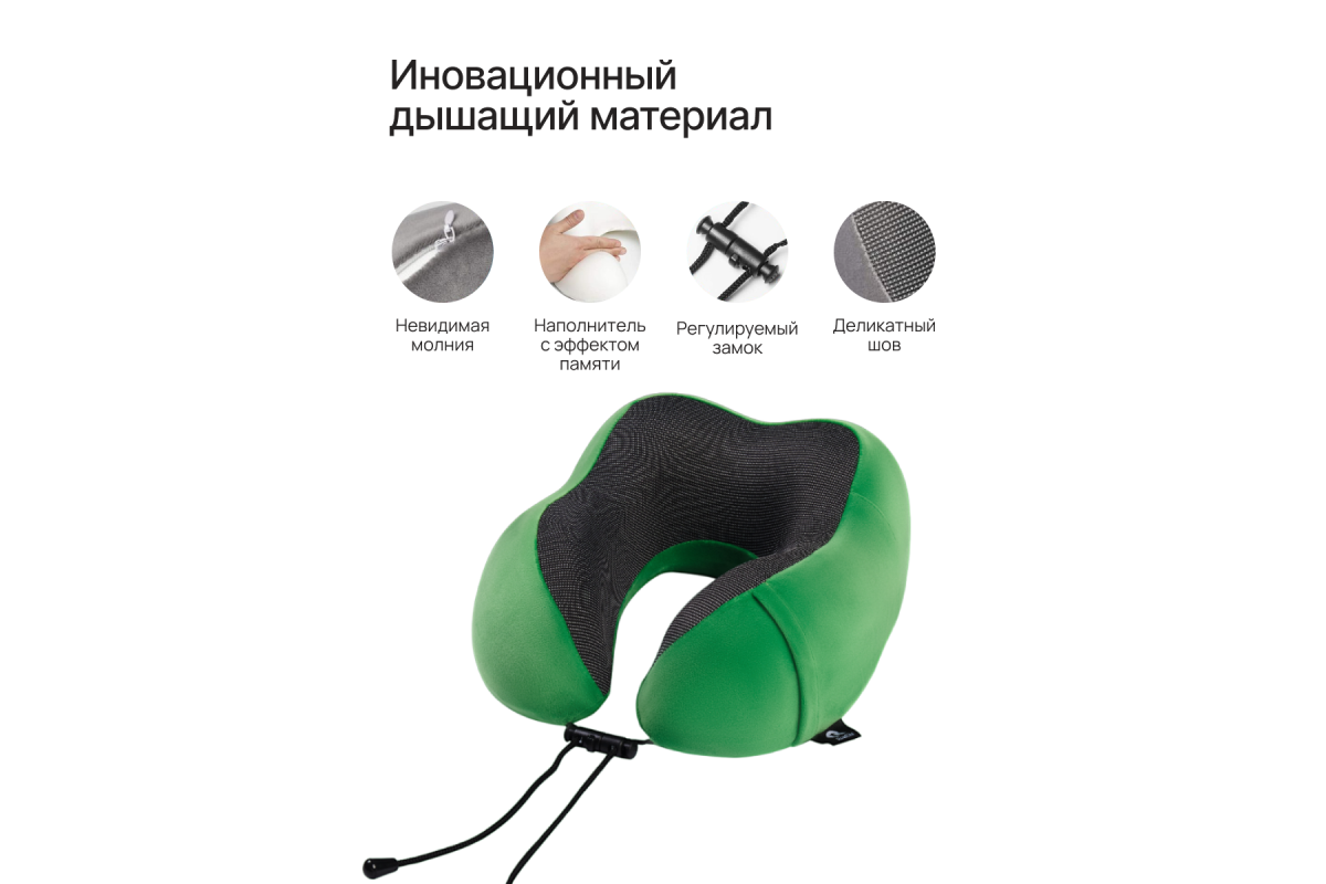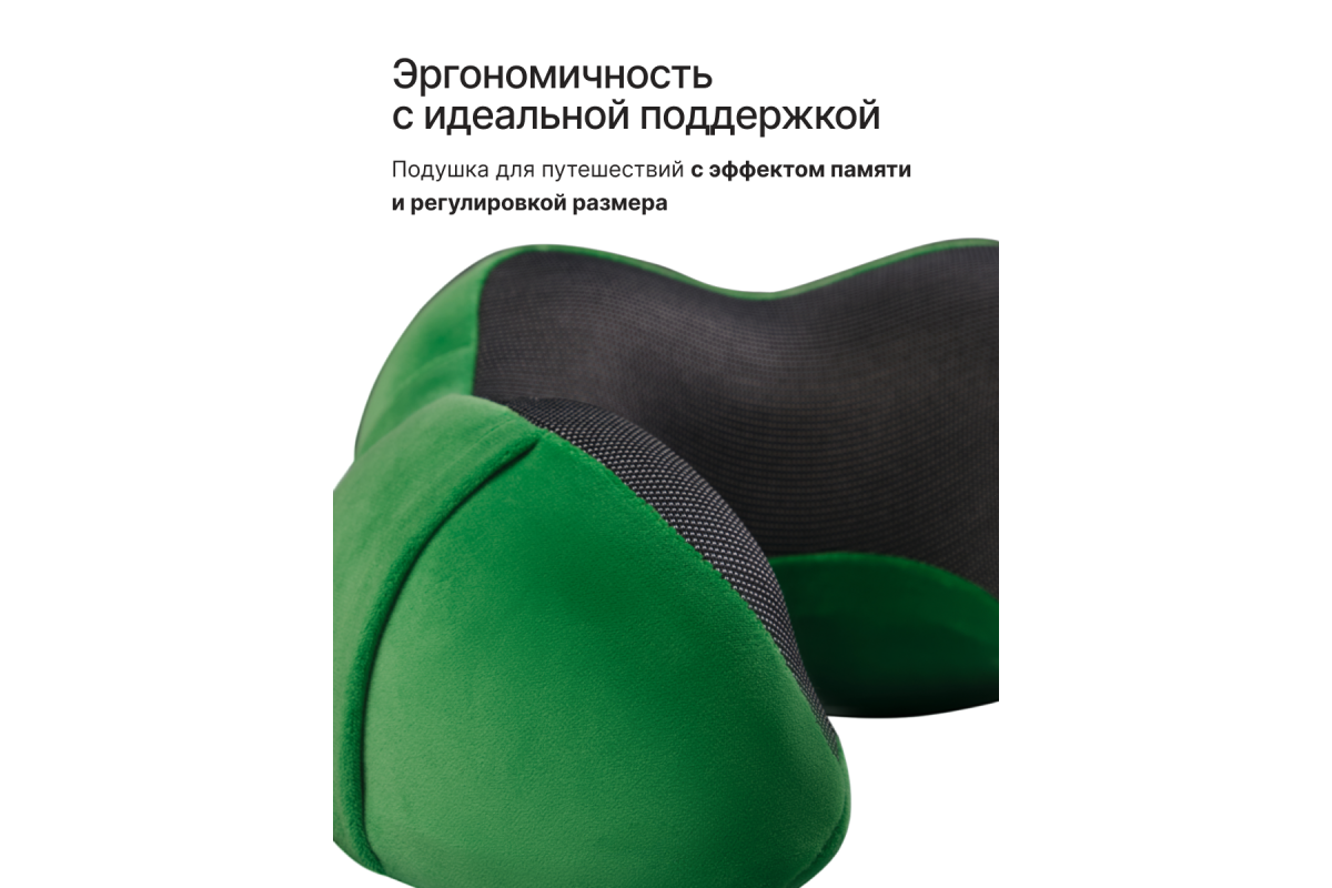 Подушка для путешествий RoadLike Travel Kit Velvet с эффектом памяти, зеленый