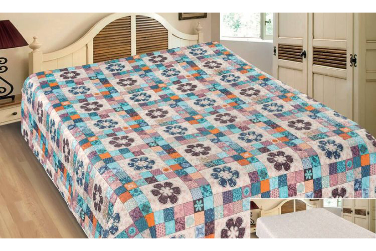 Двухсторонние покрывала коллекции Элегант отличаются необычным дизайном и стабильно высоким качеством. Различные расцветки покрывал в стиле геометрии и пэчворка порадуют Вас и преобразят любой Ваш интерьер! Накинув покрывало на кровать или диван и живописно разложив подушки, Вы привнесете в интерьер неповторимое ощущение уюта и благоустроенности. Состав ткани: полиэфирное волокно, плотность 70 гр/м2, использованы пигментные красители, все дизайны имеют компаньон. Покрывало двухстороннее: верх покрывала – основной рисунок, нижняя часть – компаньон; микрофибра с двух сторон, в середине синтепон, простегано способом ультрастеп (термостёжка). Края обработаны шелковой бейкой