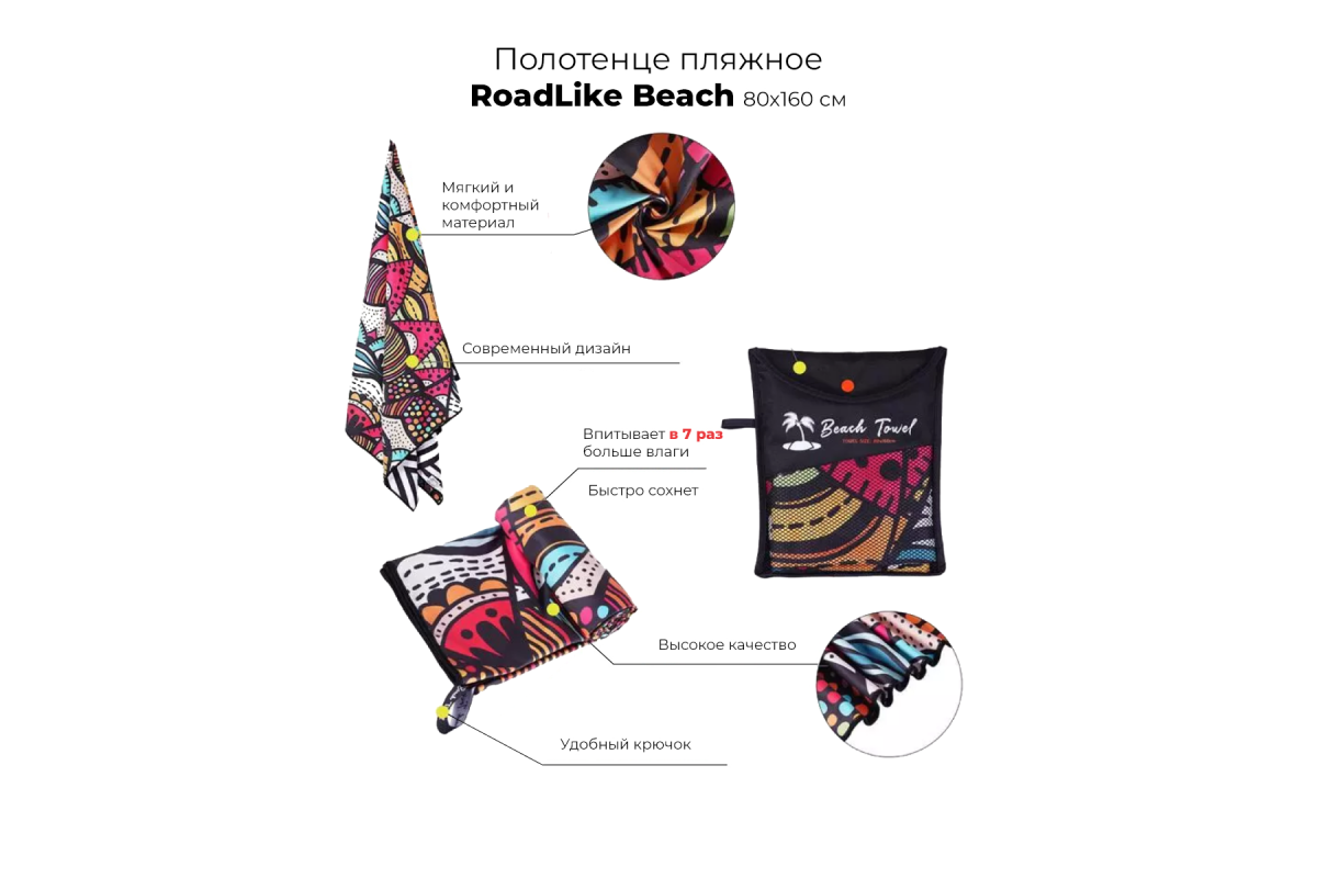 Полотенце пляжное RoadLike Beach - компактное полотенце выполненное из микрофибры. Данный материал гипоаллергенен, не несёт в себе разного рода вредные микрочастицы и бактерии. Большим преимуществом является малый вес и способность впитывать влагу в 7-9 раз больше собственного веса изделия. Достаточно выжать полотенце руками, чтобы оно стало почти сухим. Полотенце из микрофибры дольше сохраняет свой внешний вид и не бахромится, а цвет остается ярким даже после большого количества стирок. Наши полотенца идут в комплекте с компактной, фирменной сумкой.