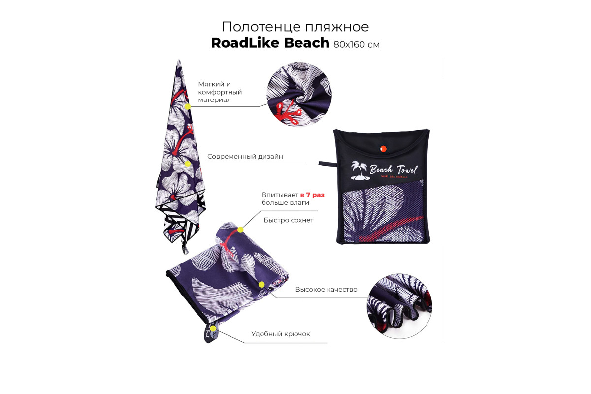 Полотенце пляжное RoadLike Beach - компактное полотенце выполненное из микрофибры. Данный материал гипоаллергенен, не несёт в себе разного рода вредные микрочастицы и бактерии. Большим преимуществом является малый вес и способность впитывать влагу в 7-9 раз больше собственного веса изделия. Достаточно выжать полотенце руками, чтобы оно стало почти сухим. Полотенце из микрофибры дольше сохраняет свой внешний вид и не бахромится, а цвет остается ярким даже после большого количества стирок. Наши полотенца идут в комплекте с компактной, фирменной сумкой.