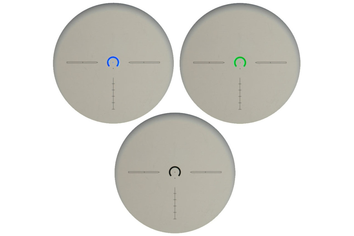 Прицельная сетка конструктивно расположена во 2-ой фокальной плоскости прицела — при изменении кратности сетка визуально не меняется, сохраняя размер в поле зрения. Цена деления (щелчка) механизма ввода поправок составляет 1/2“ или 15 мм на дистанции 100 м.