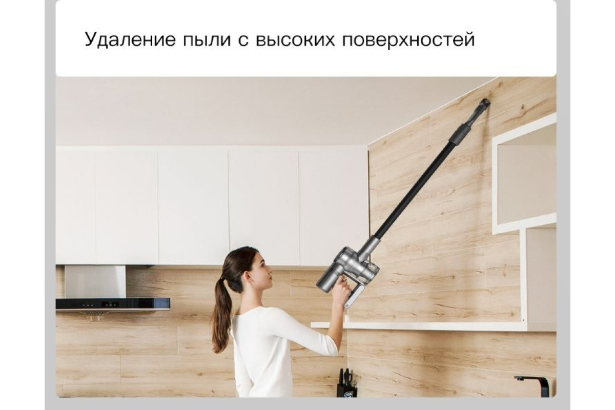Ручной беспроводной пылесос Dreame V12 обладает компактной, эргономичной конструкцией. Встроенный перезаряжаемый аккумулятор позволяет осуществлять уборку в течение 90 минут в стандартном режиме, а небольшой вес модели позволит взять ее с собой в гараж для уборки салона автомобиля или детского кресла. Пылесос имеет бесконтактный способ очистки полулитрового пылесборника, а смена насадок не требует каких-либо дополнительных усилий. Для восстановления заряда батареи в комплекте идет поворотный держатель с зарядной базой, который крепится вертикально на стену и также позволяет хранить насадки в одном месте. Полная зарядка батареи составляет 4 часа.