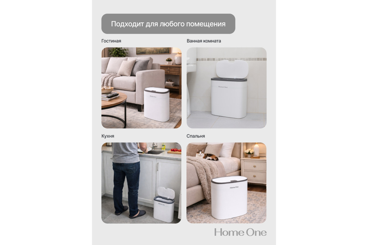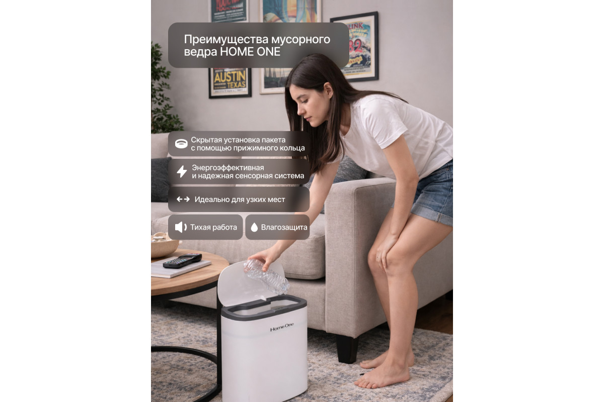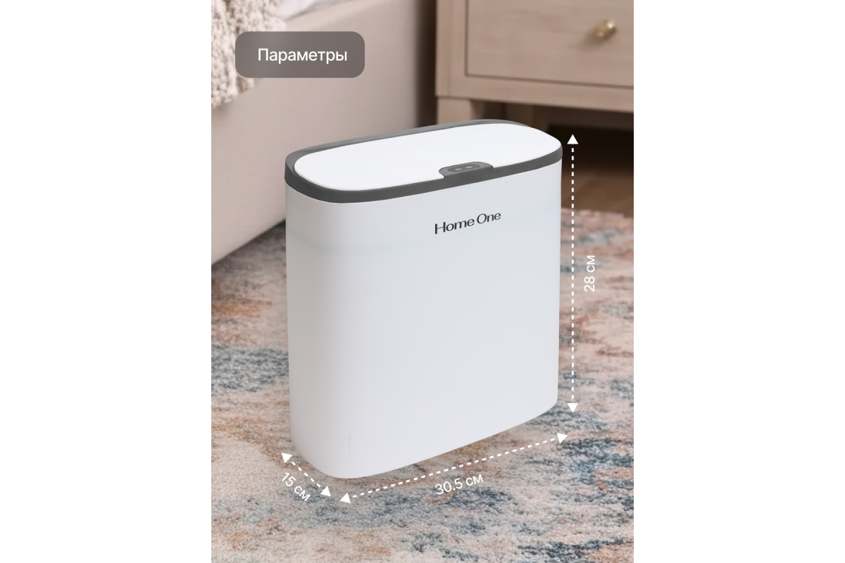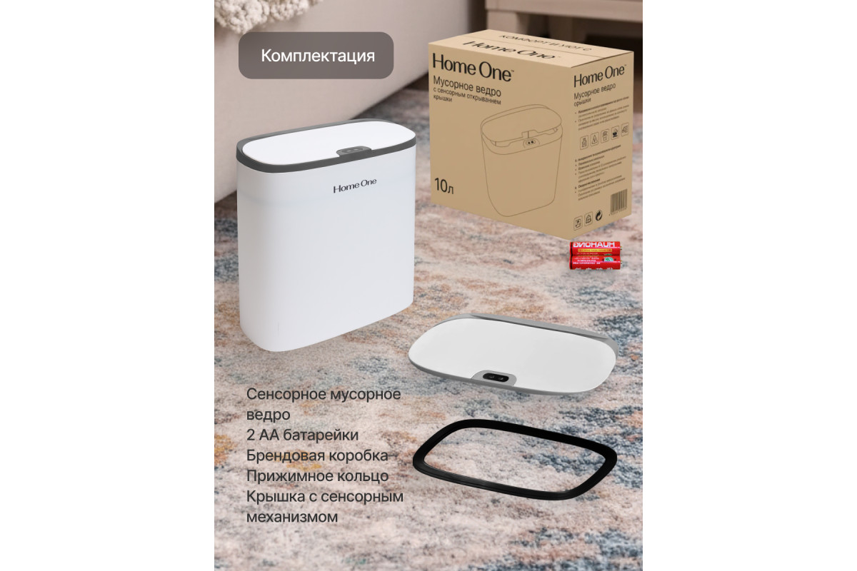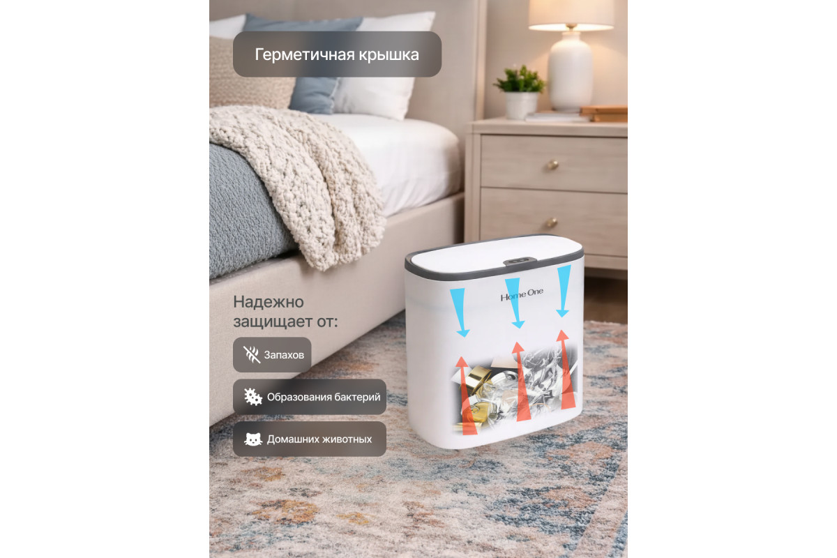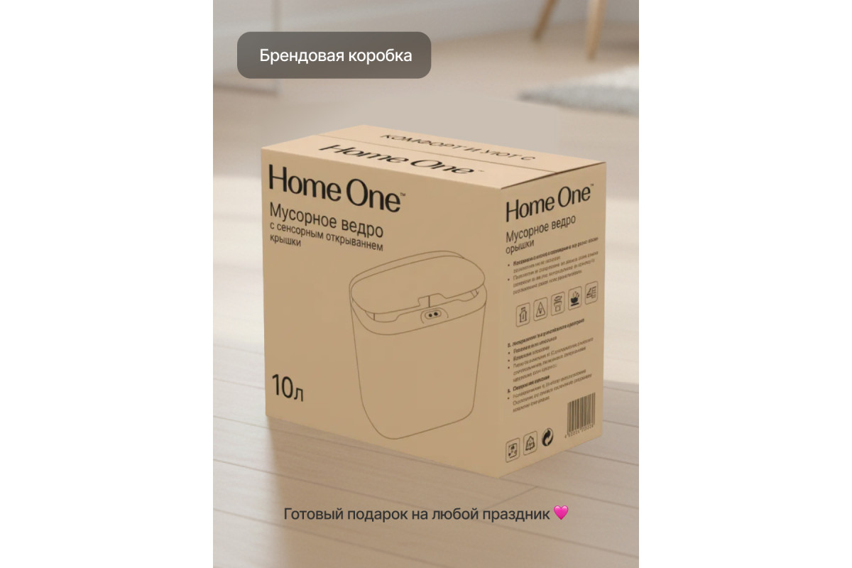 Функциональное сенсорное мусорное ведро HOME ONE с датчиком открывания крышки объемом 10 литров - гигиеничное решение для дома, идеально сочетается с аксессуарами для ванны, в туалет, в спальню или на кухню.