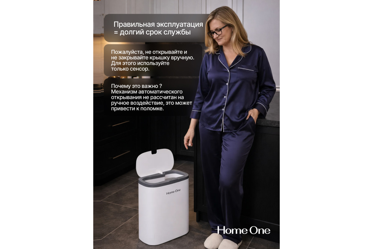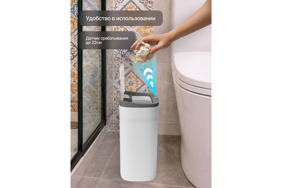 Сенсорная технология мусорного ведра позволяет открывать и закрывать крышку без необходимости касания рук, обеспечивая максимальную гигиену и комфорт в использовании. Электронный сенсорный датчик срабатывает при поднесении руки на расстояние до 22 см сверху ведра и крышка открывается.