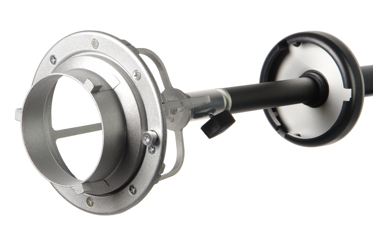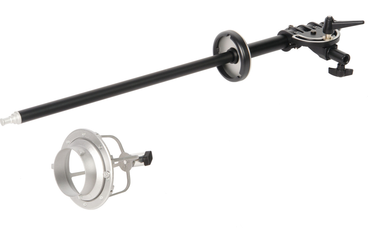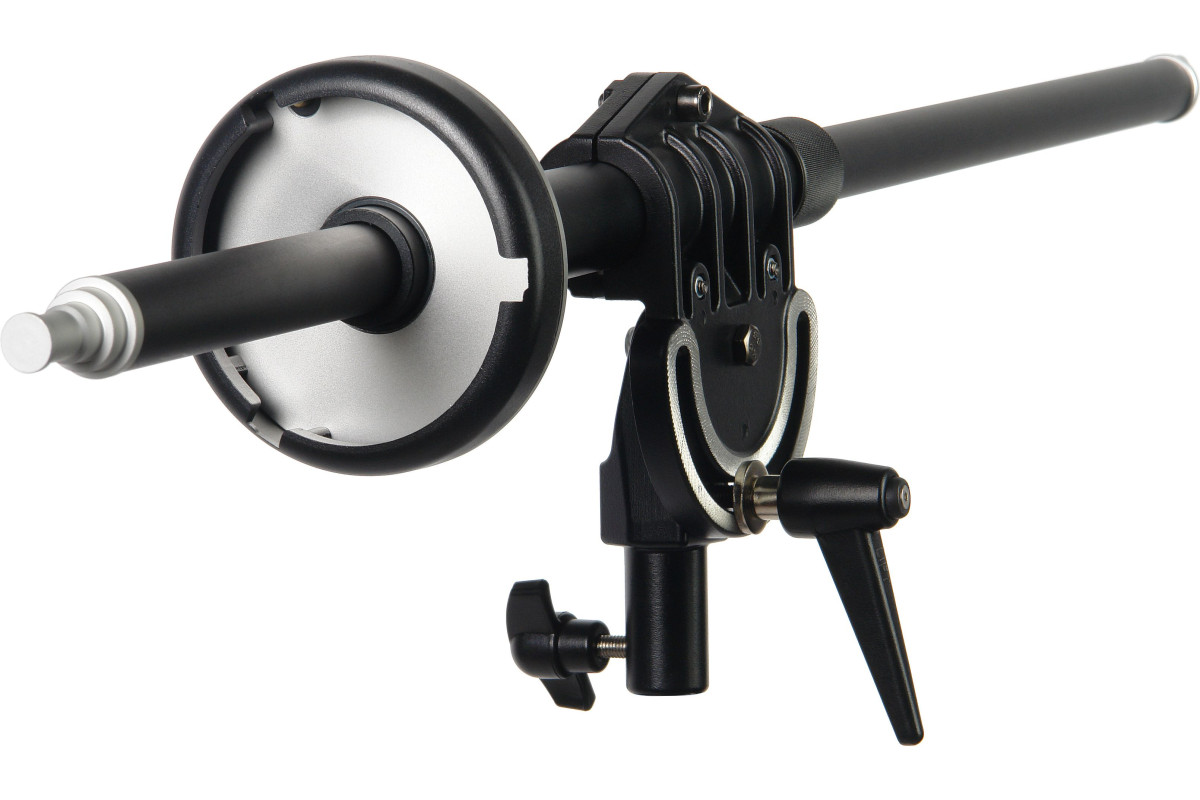 Поскольку штанга предназначена для работы с большими тяжелыми софтбоксами и студийными моноблоками, все основные узлы штанги выполнены из толстостенного металла. Поэтому перекладина, байонетное кольцо, съемный адаптер для крепления осветителя, кронштейн и другие детали выдерживают нагрузки при работе (вес установленного оборудования до 8 кг). Штанга прослужит долгие годы, не меняя рабочих свойств.