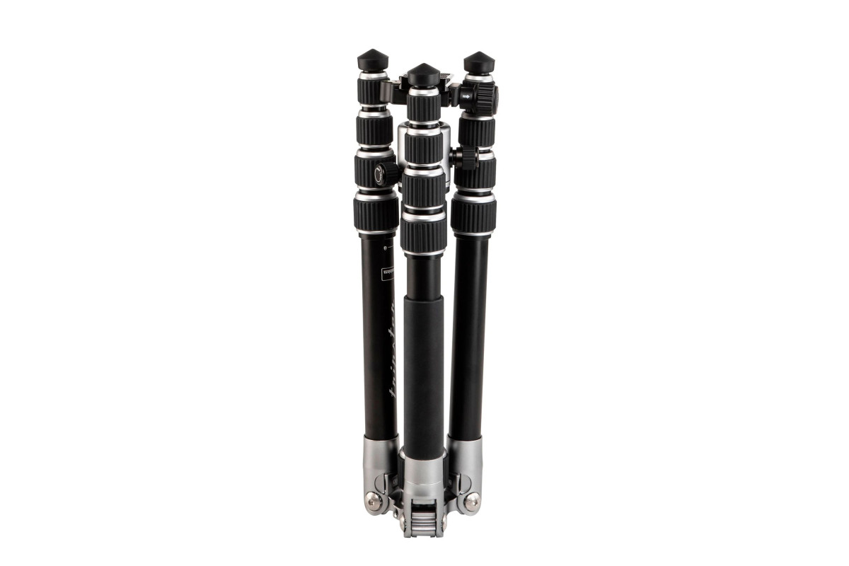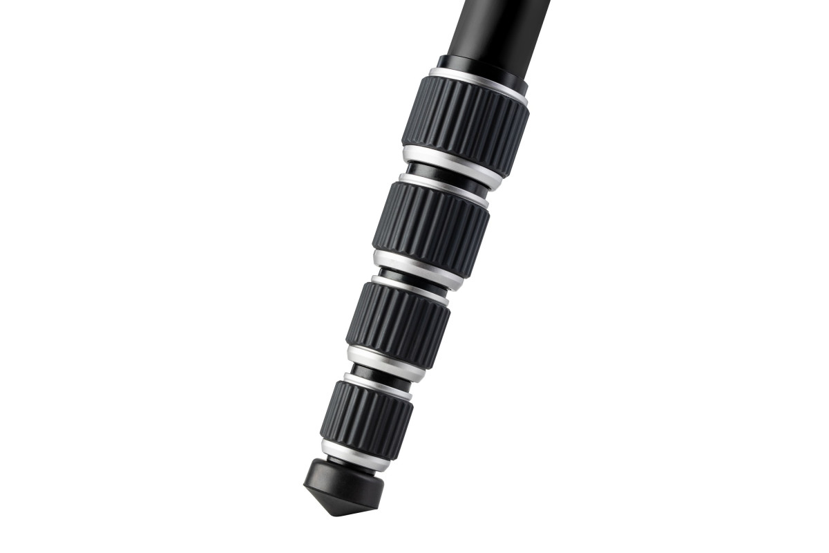 Цанговые замки обеспечивают быструю и удобную установку, надежную фиксацию каждой секции штатива. На литом хабе имеется резьба ¼ дюйма для установки различного оборудования (свет, монитор, микрофон и т.п.) без использования дополнительных опор. Центральная телескопическая колонна с двумя цанговыми фиксаторами поднимет вашу камеру на нужную высоту без потери прочности всей конструкции. Для съемки в ограниченном пространстве предусмотрена быстрая трансформация штатива в монопод без использования инструментов. Отсоедините одну ножку и центральную колонну, соедините их вместе, монопод готов. Высота монопода 156 см. Три независимых положения регулировки угла наклона ног позволяют расположить штатив на пересеченной местности.