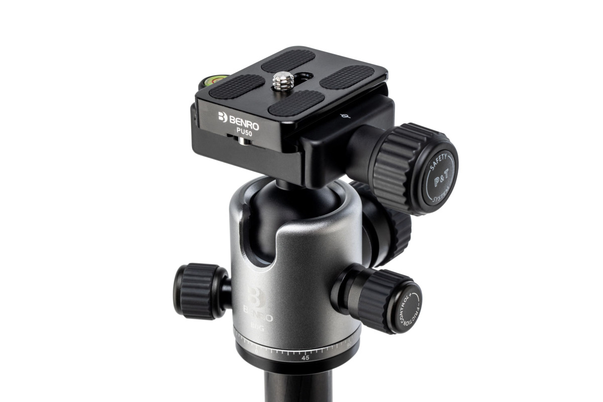 Комплектуется шаровой головкой Benro B0G. Предусмотрен быстрый переход из панорамной ориентации в портретную. Фрикцион, регулирующий степень блокировки шара, в зависимости от веса установленного оборудования. Независимое панорамирование на 360 градусов. Цифровая шкала на оси для точного кадрирования и совмещения изображений. Быстросъемная штативная площадка Benro PU50 совместимая с Arca-Swiss, обеспечивает быструю установку оборудования. Защитная функция двойной блокировки предотвращает падение камеры при сбое в работе. Пузырьковый уровень позволит точно установить камеру по линии горизонта.