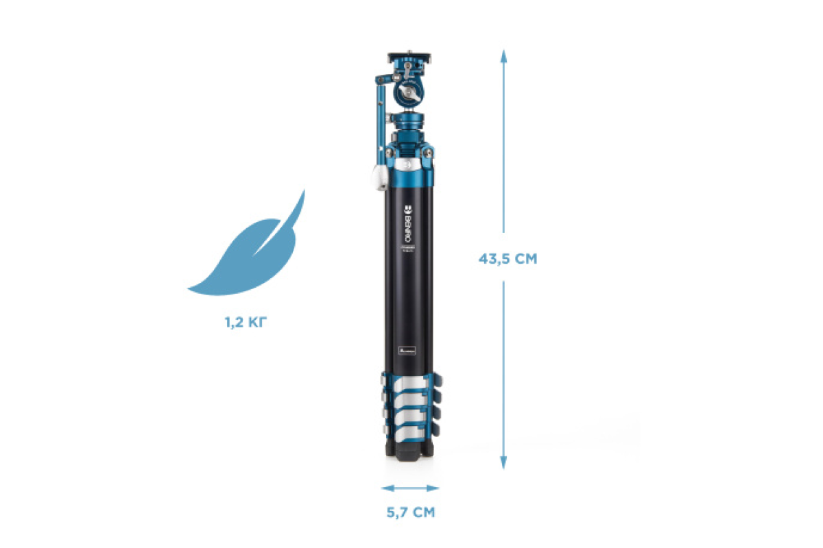 Ноги изготовлены из легкого и прочного алюминия, что позволило получить легкий штатив, весом всего 1,22 кг.