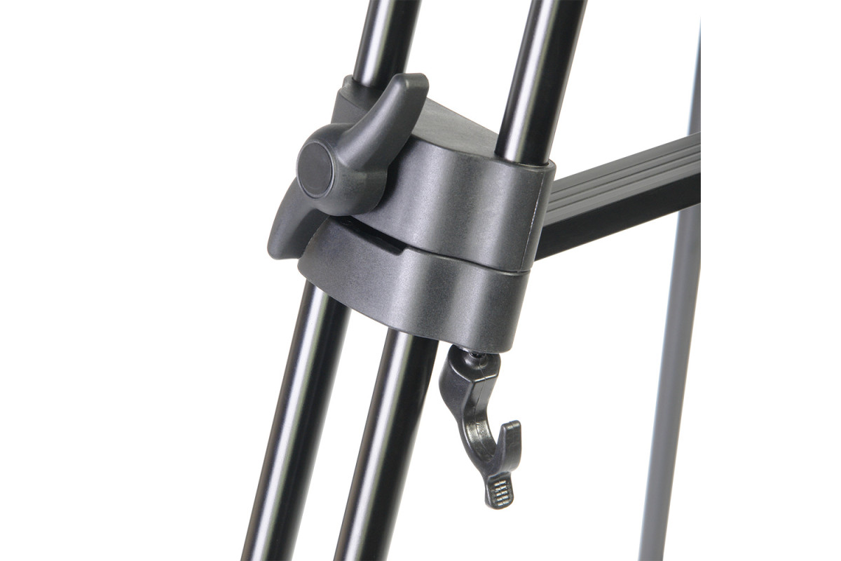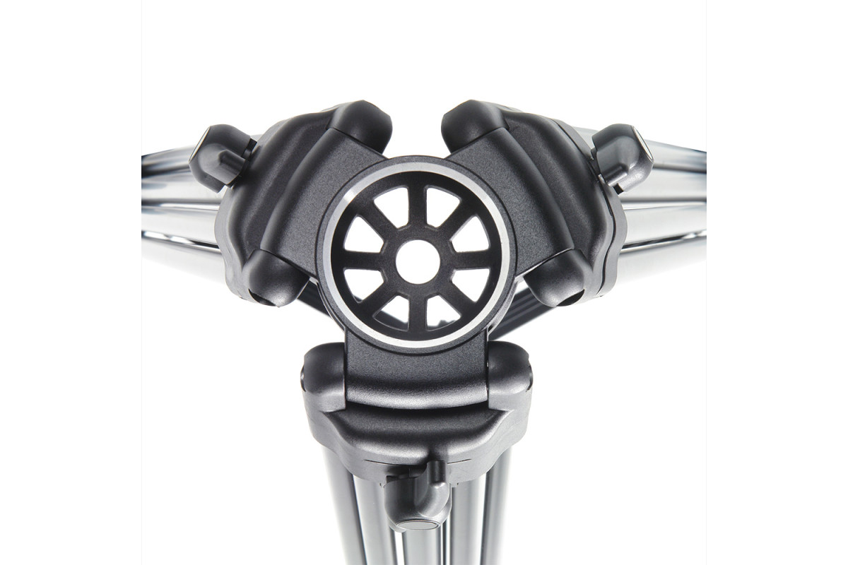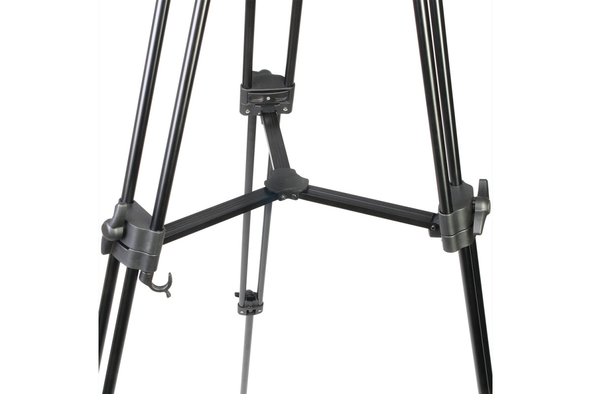 3-секционные сдвоенные телескопические алюминиевые ноги обеспечивают компактность и малый вес. Модернизированные зажимы надежно и быстро блокируют секции. Для усиления штатива используется верхняя растяжка, благодаря этому штатив можно использовать на неровных поверхностях (камнях, ступенях лестницы и т.д.). На концах штативных ног размещены резиновые опоры препятствующие скольжению. Для дополнительной устойчивости в ветреную погоду в одной из ног штатива находится подпружиненный трос с крюком для установки груза противовеса.