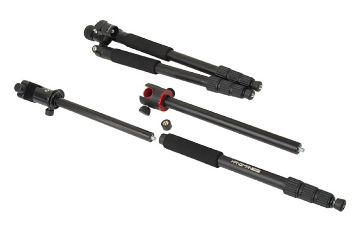 Одна из ног штатива съемная, соединив её с центральной колонной и головкой можно получить монопод высотой от 173 до 89 см, который незаменим в репортажных съемках.