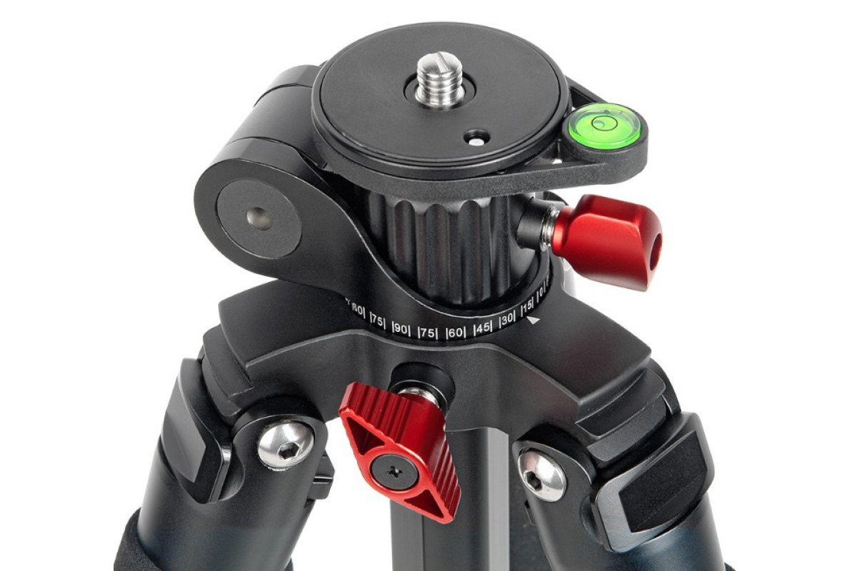 Штатив оборудован двумя пузырьковыми уровнями. Один установлен в основании штатива, а второй на площадке для установки головки. Выставить камеру в горизонтальной плоскости не составит труда. Более того, уровень, установленный в основании площадки имеет возможность вращаться вокруг центральной колонны.
